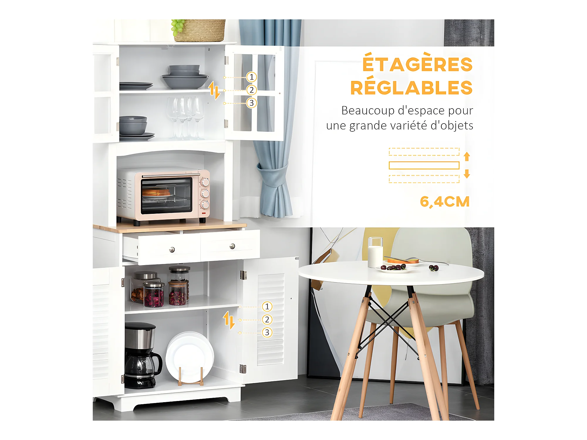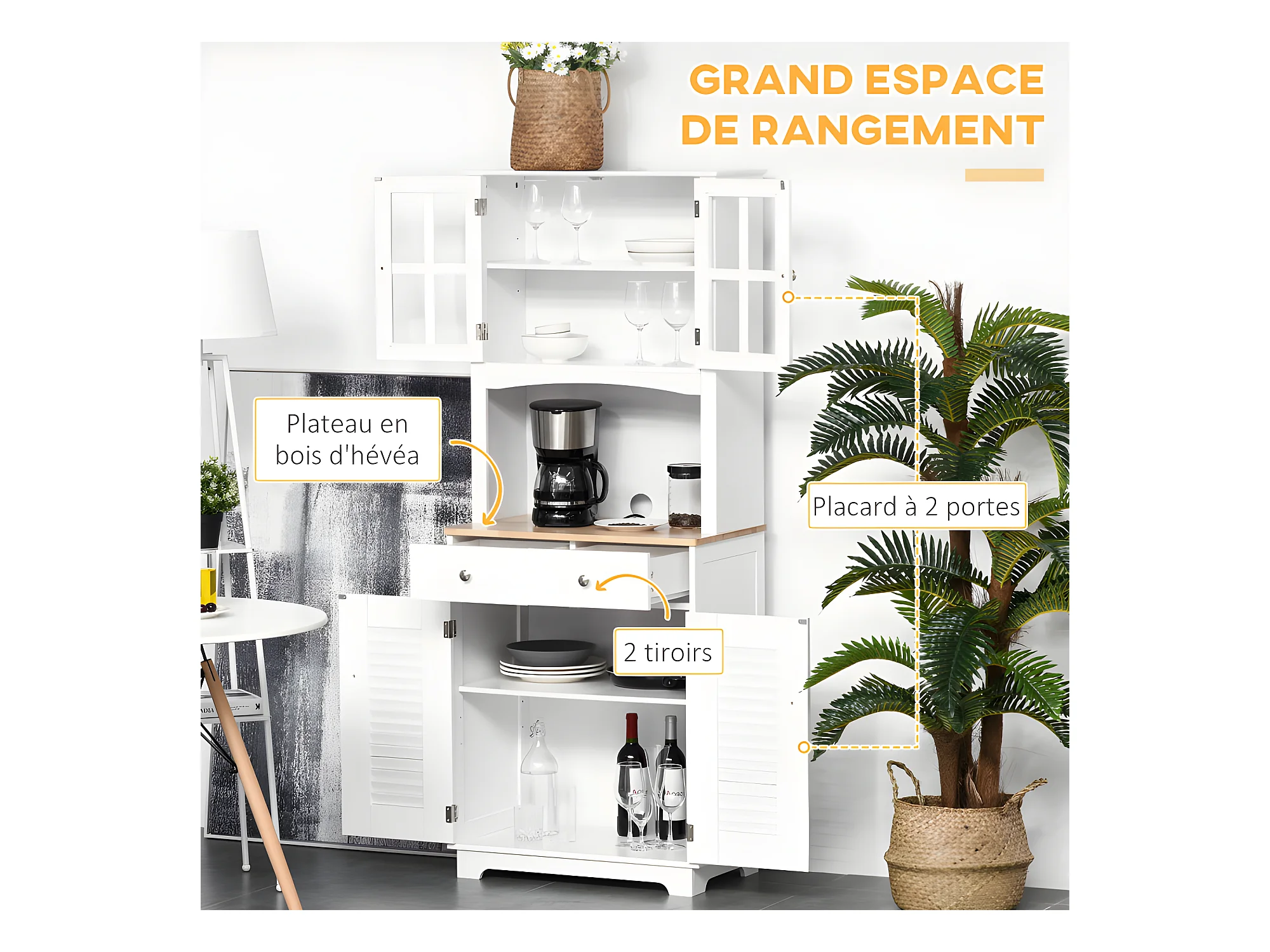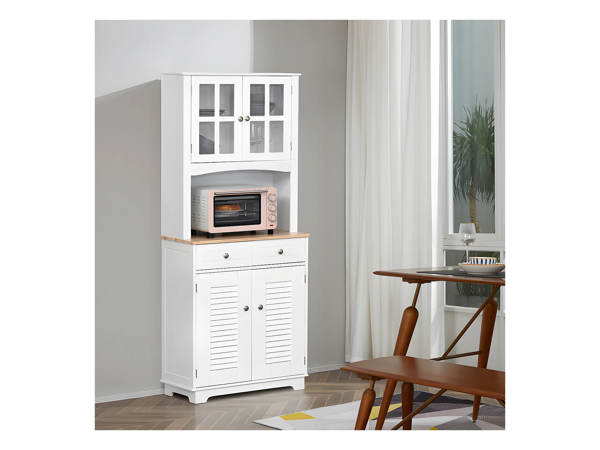 Armoire buffet de cuisine CAXIAS blanche et bois