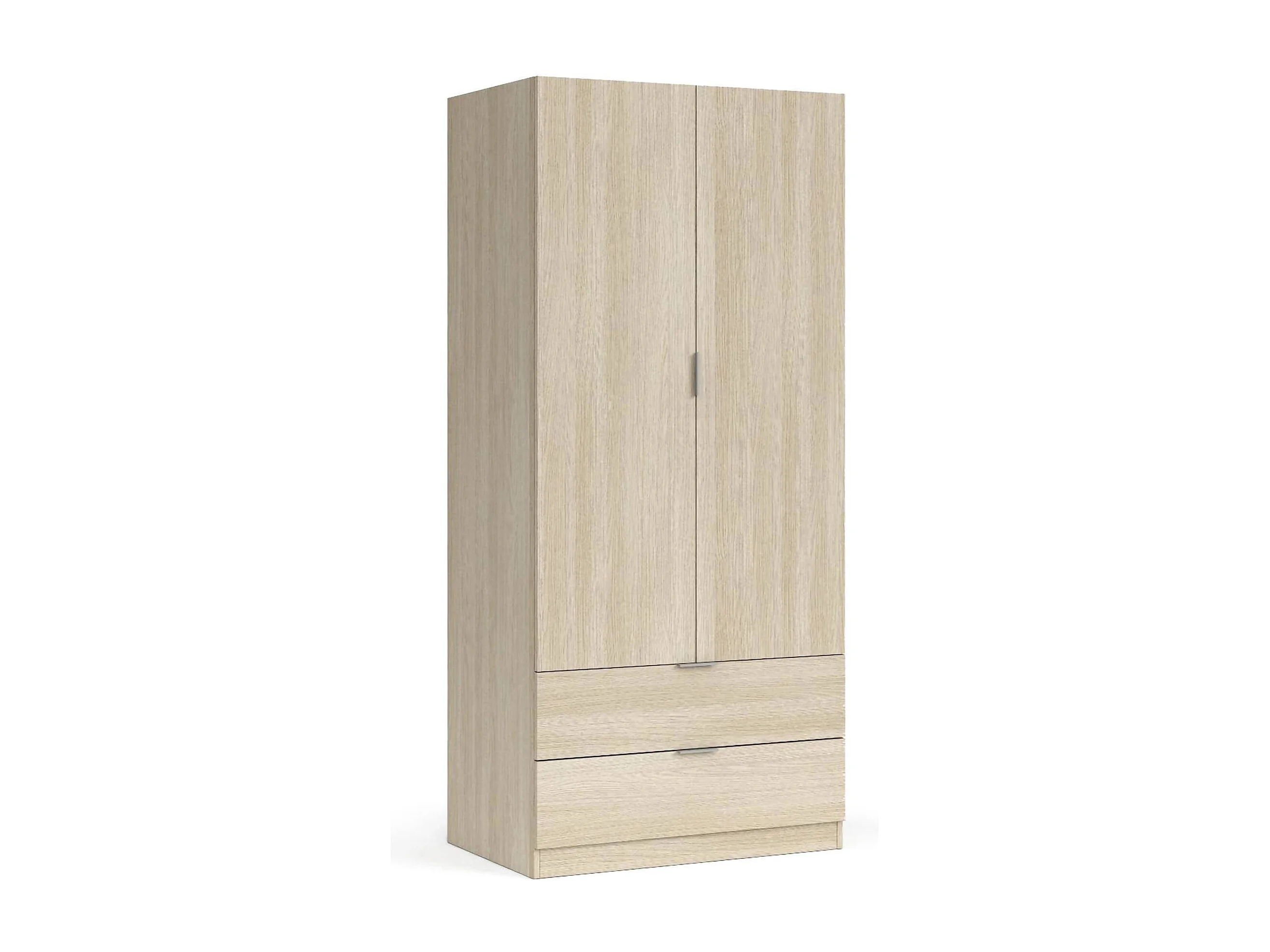 Armoire Burbank, armoire de chambre 2 portes 2 tiroirs, armoire de chambre avec barre de suspension, 81x52h180 cm, chêne