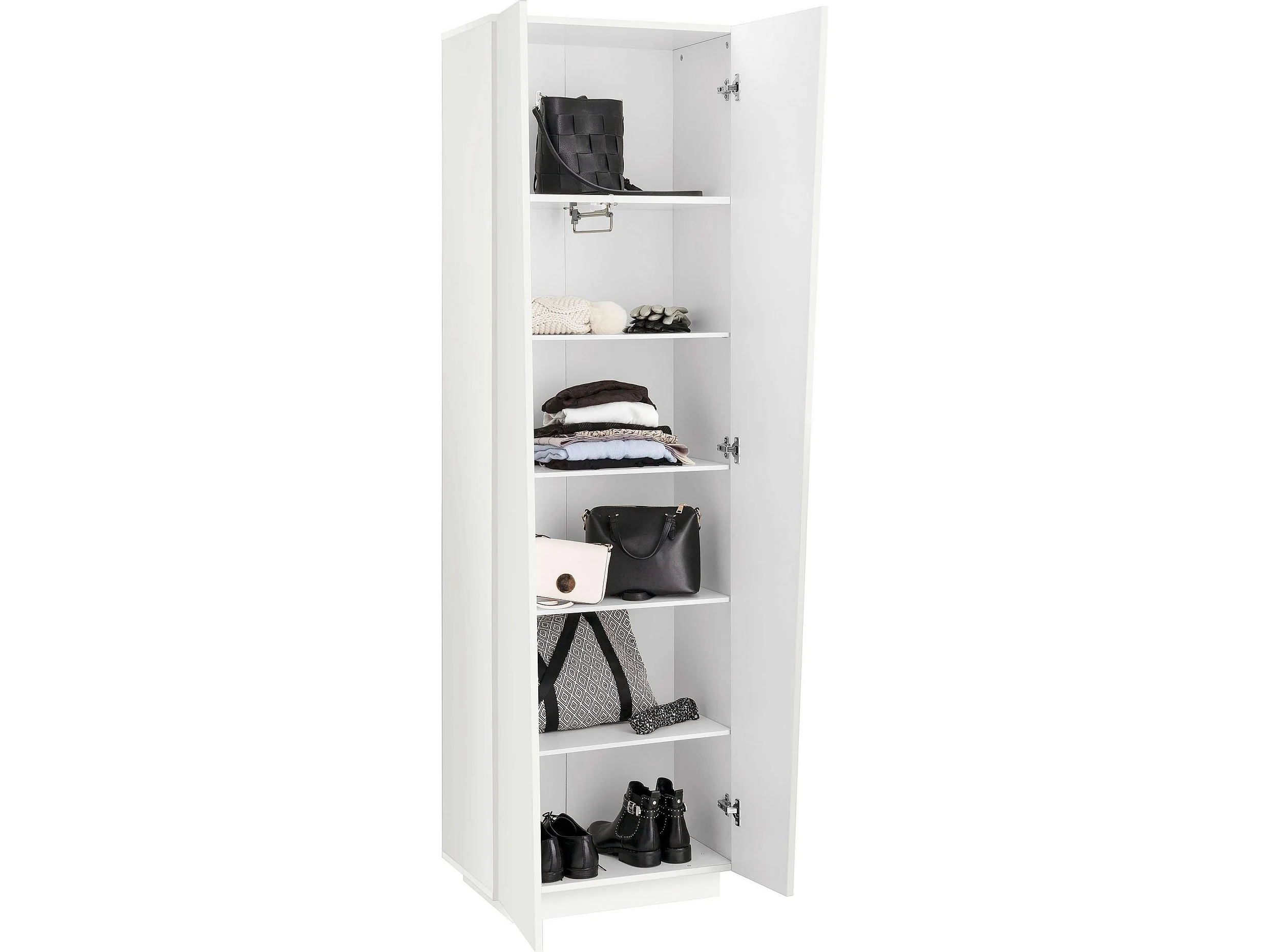 Armoire chambre et salon moderne polyvalente blanc brillant 2 portes 6 étagères Vega Space