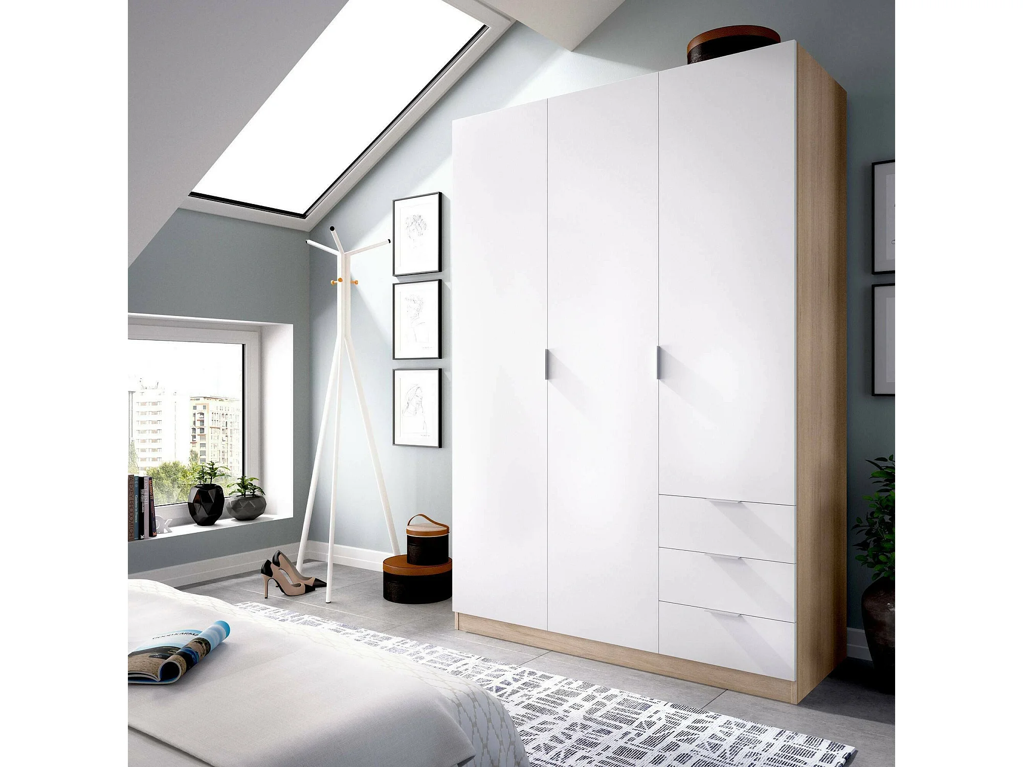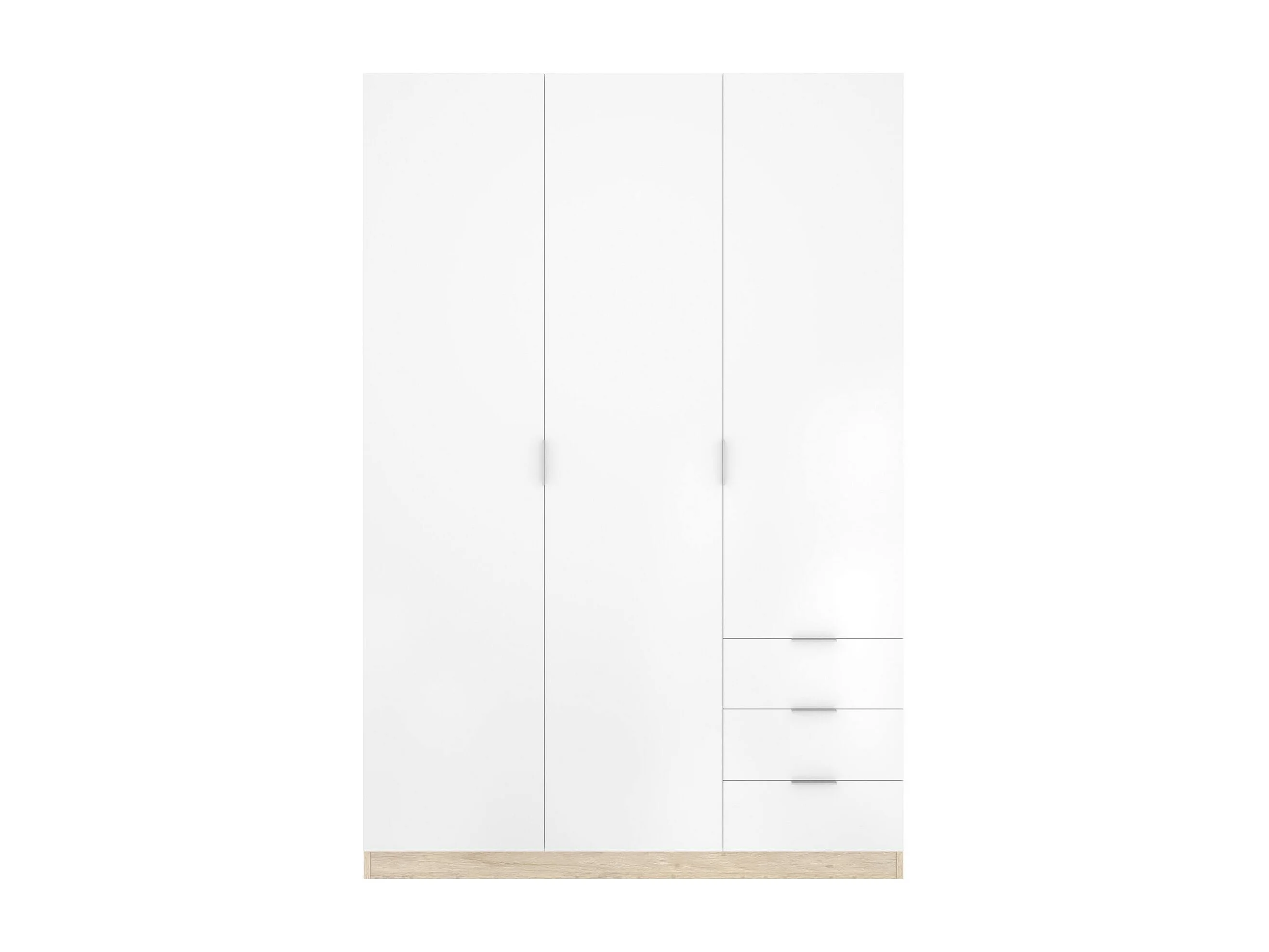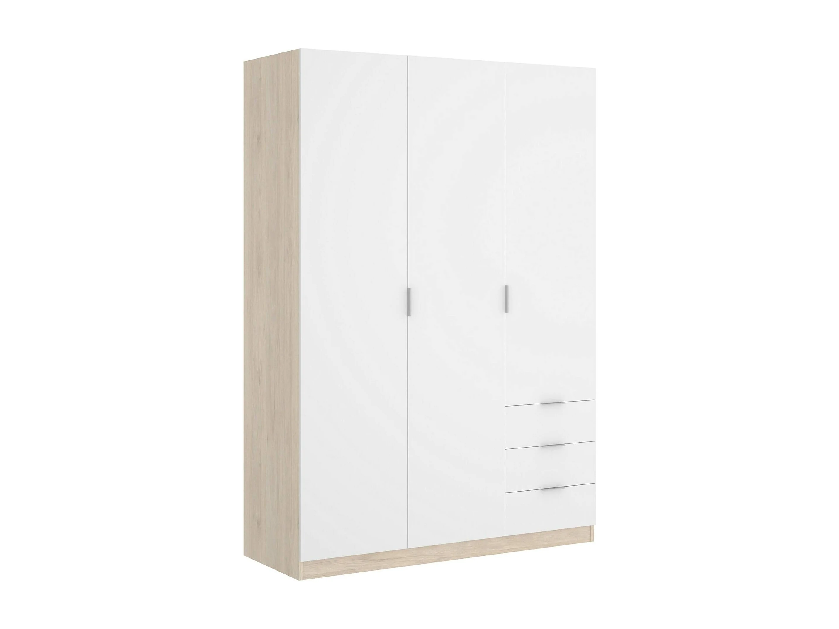 Armoire Cimone, Cintre pour chambre à coucher, Armoire avec 3 portes battantes et 3 tiroirs, 121x52h184 cm, Blanc et Chêne