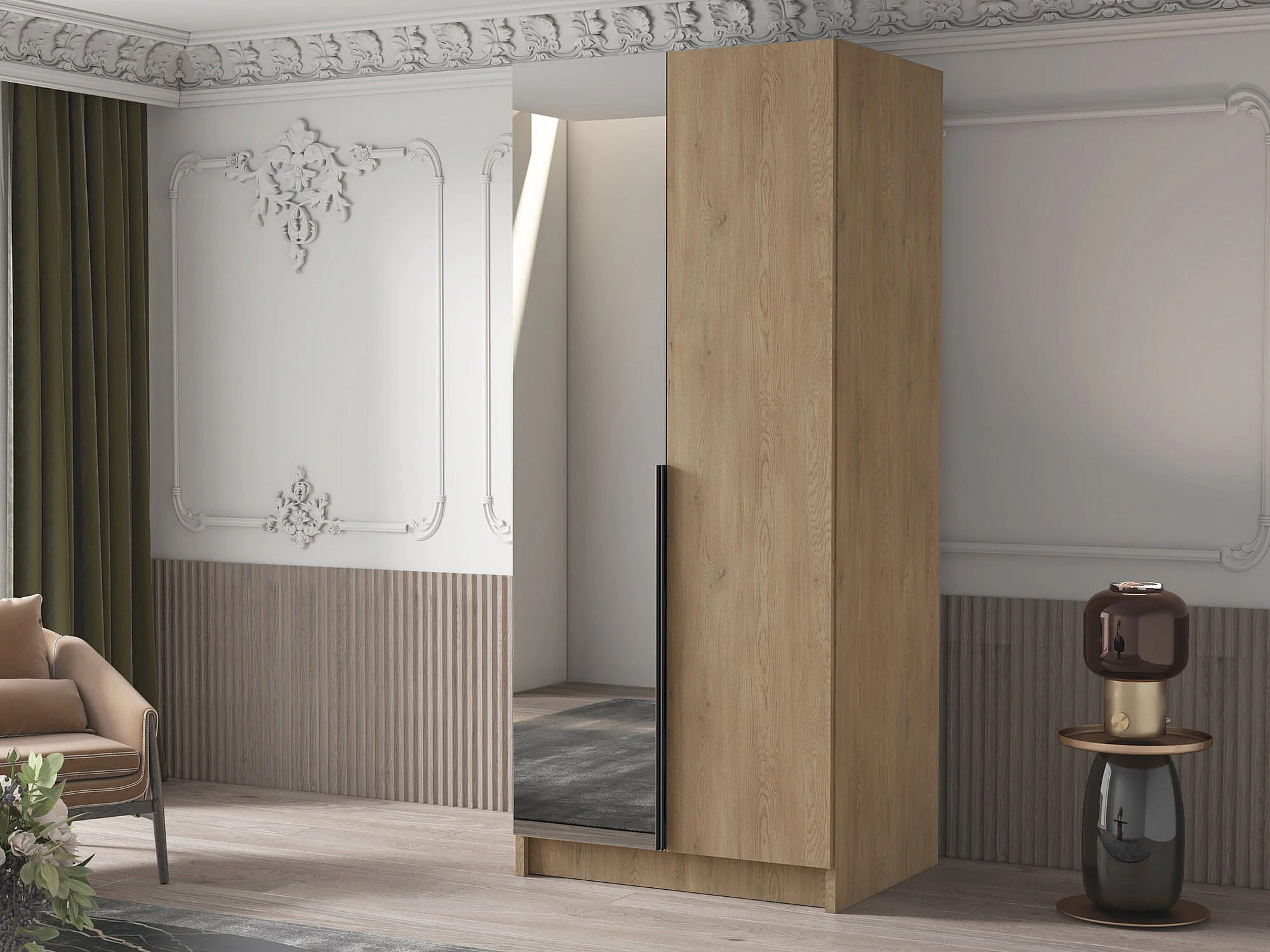 Armoire Closico 194, Clair bois|Noir, 215x100x58cm, Portes d'armoire: Avec des charnières