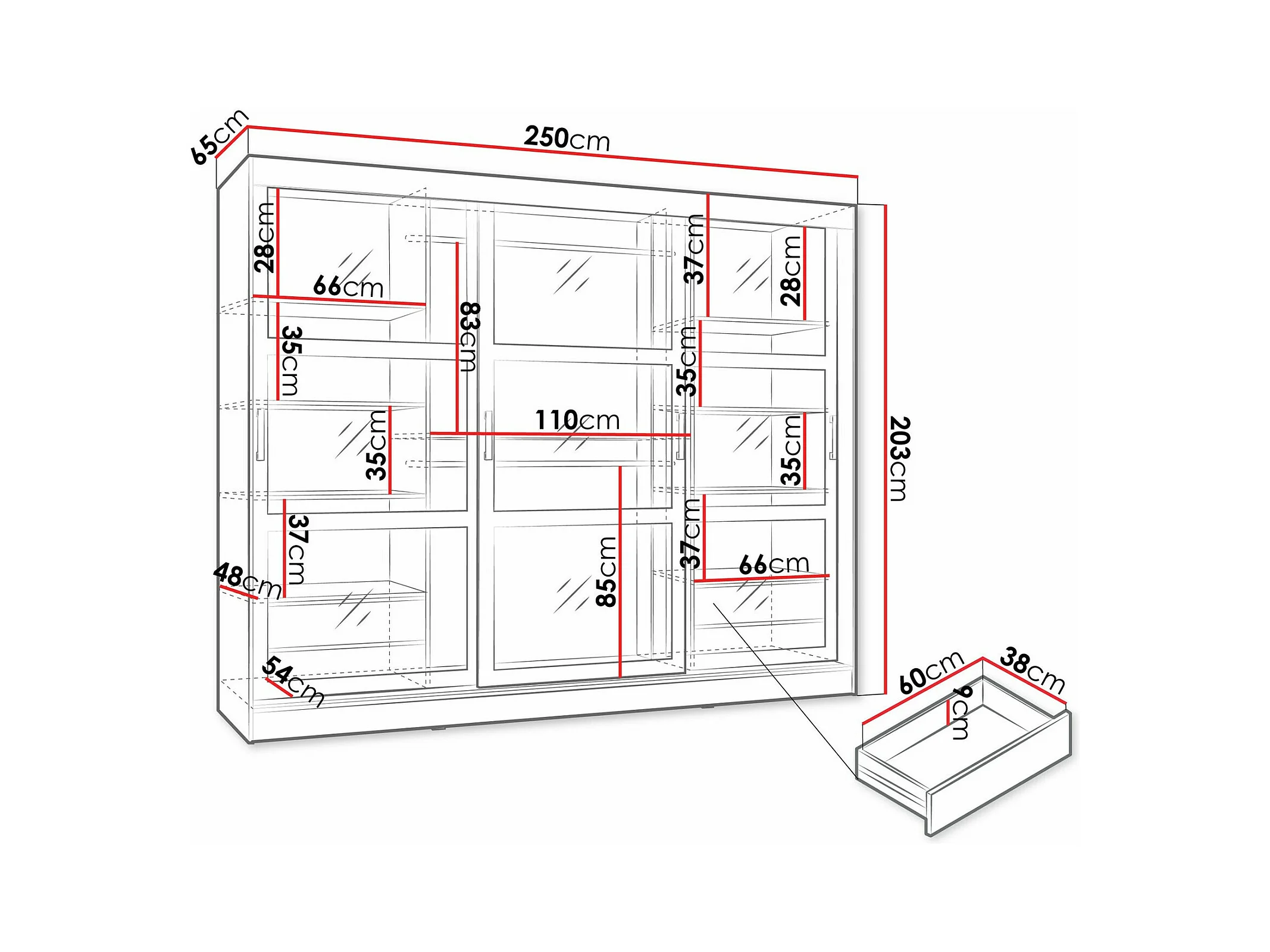 Armoire Comfivo 428, Noir, 203x250x65cm, Portes d'armoire: Coulissantes