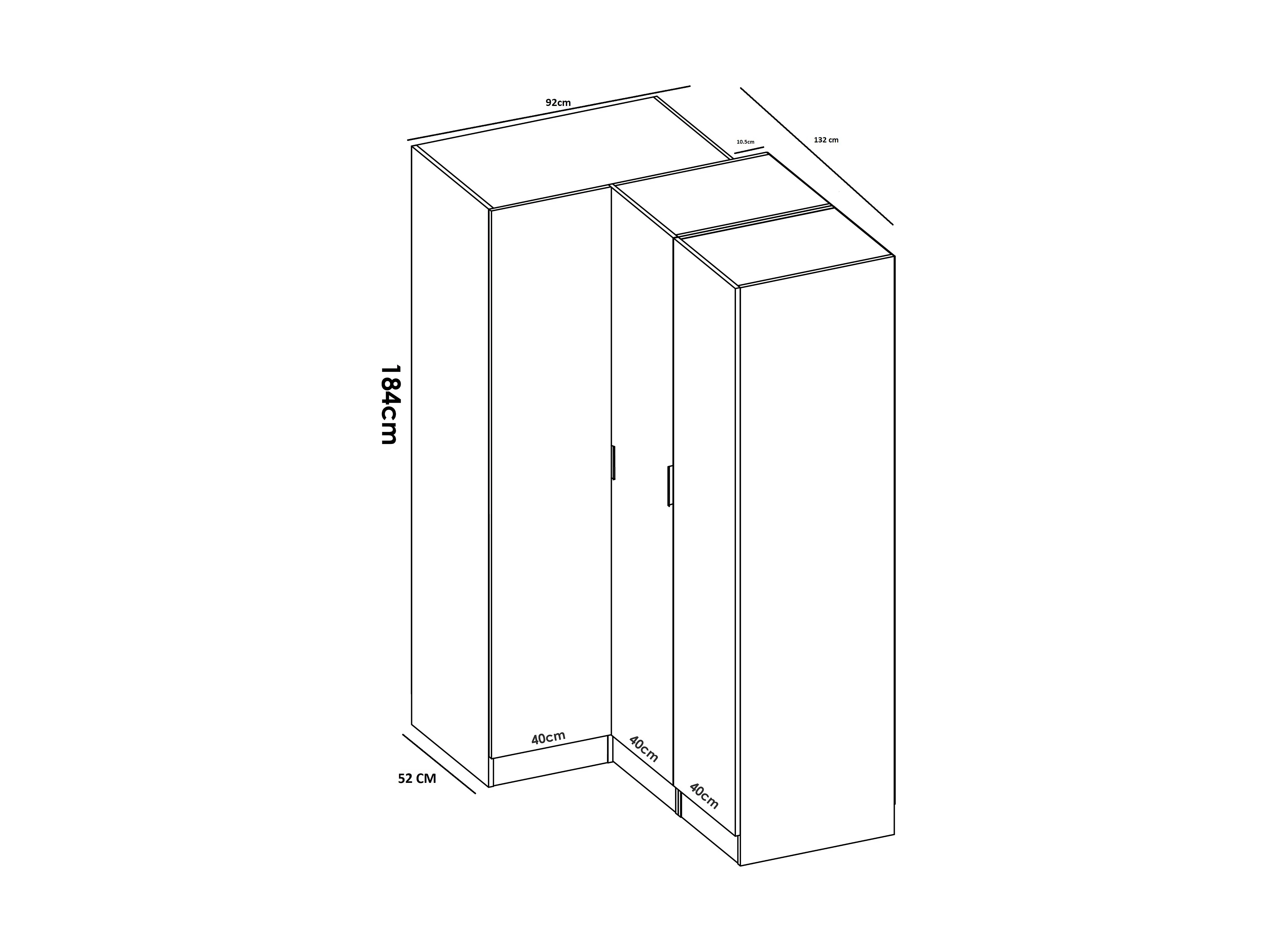 Armoire d'angle 3 portes - L132 cm - Blanc - LISTOWEL