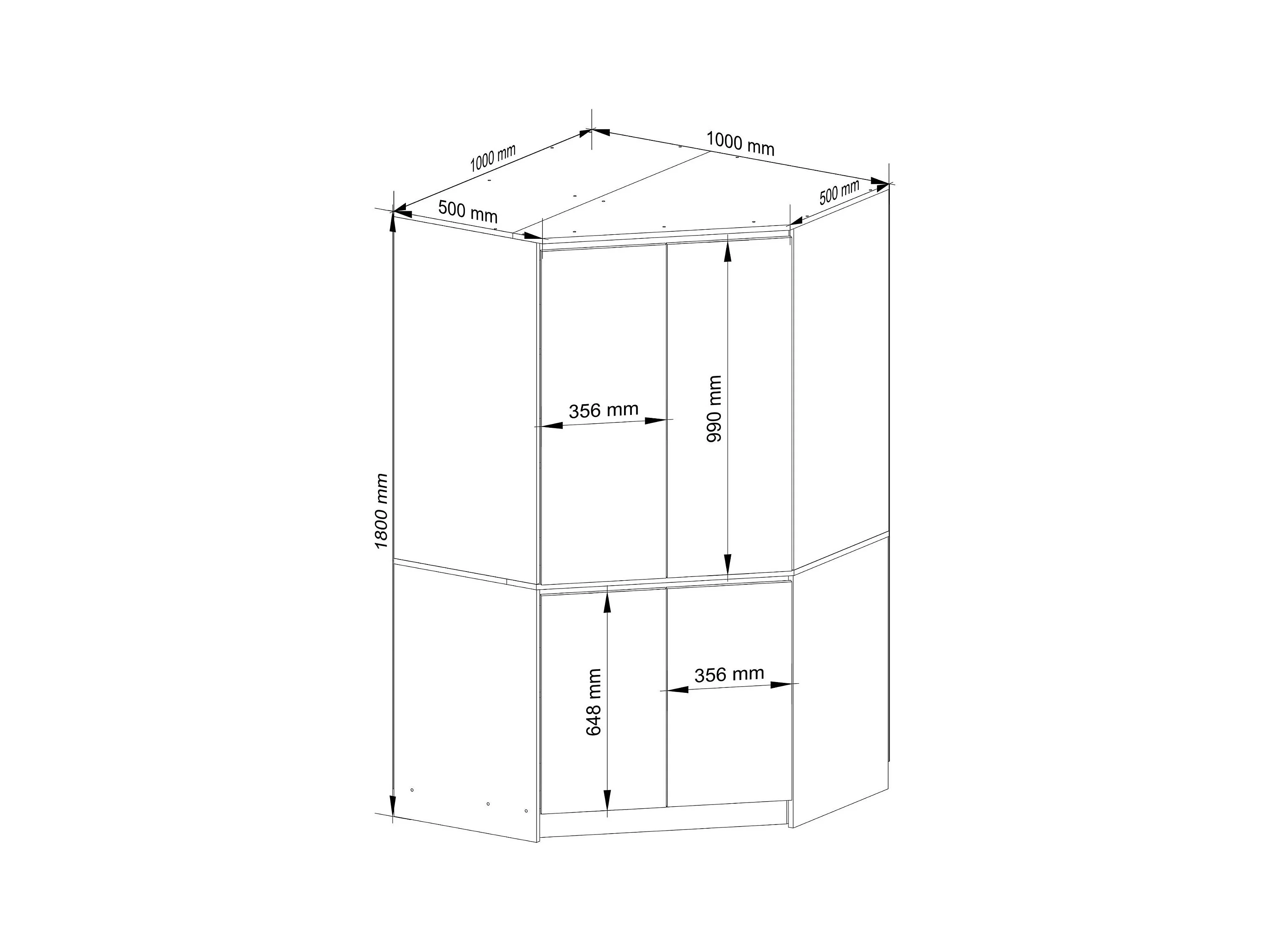 Armoire d'angle AKORD S100 Gris Graphite 100 cm 4 portes façade Gris Graphite 6 étagères 100x50x180 cm