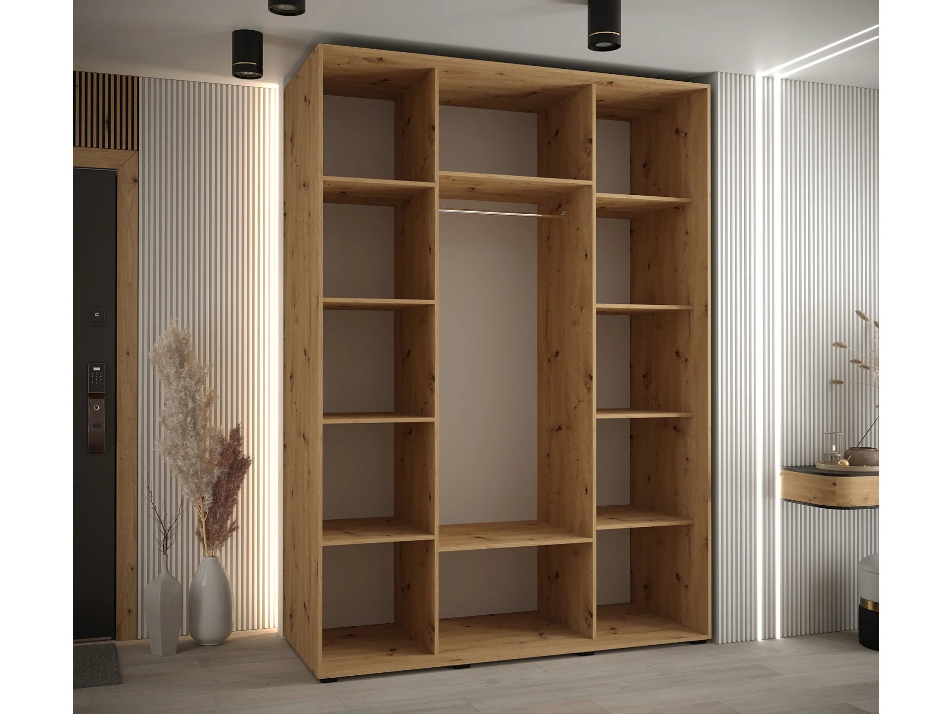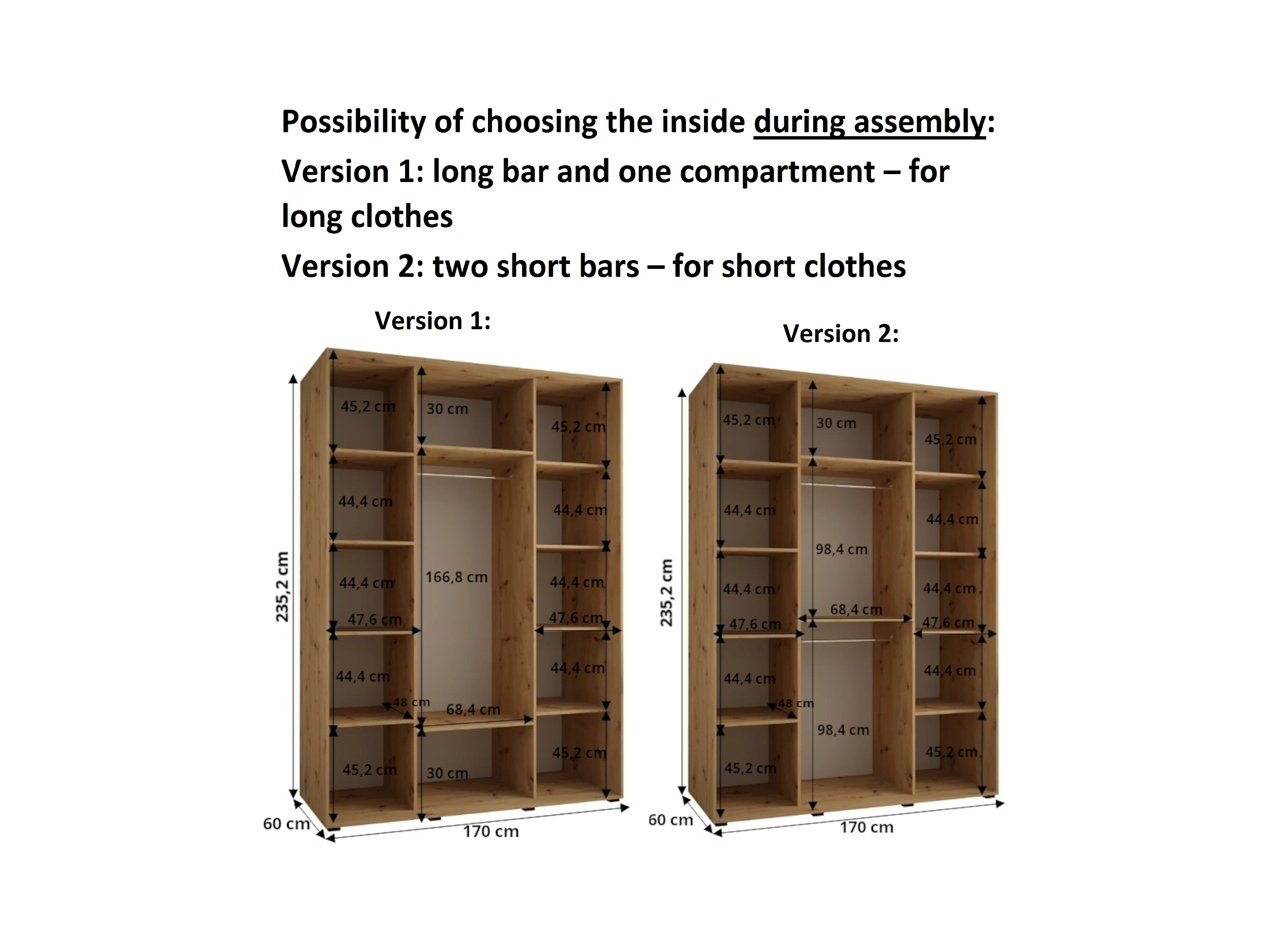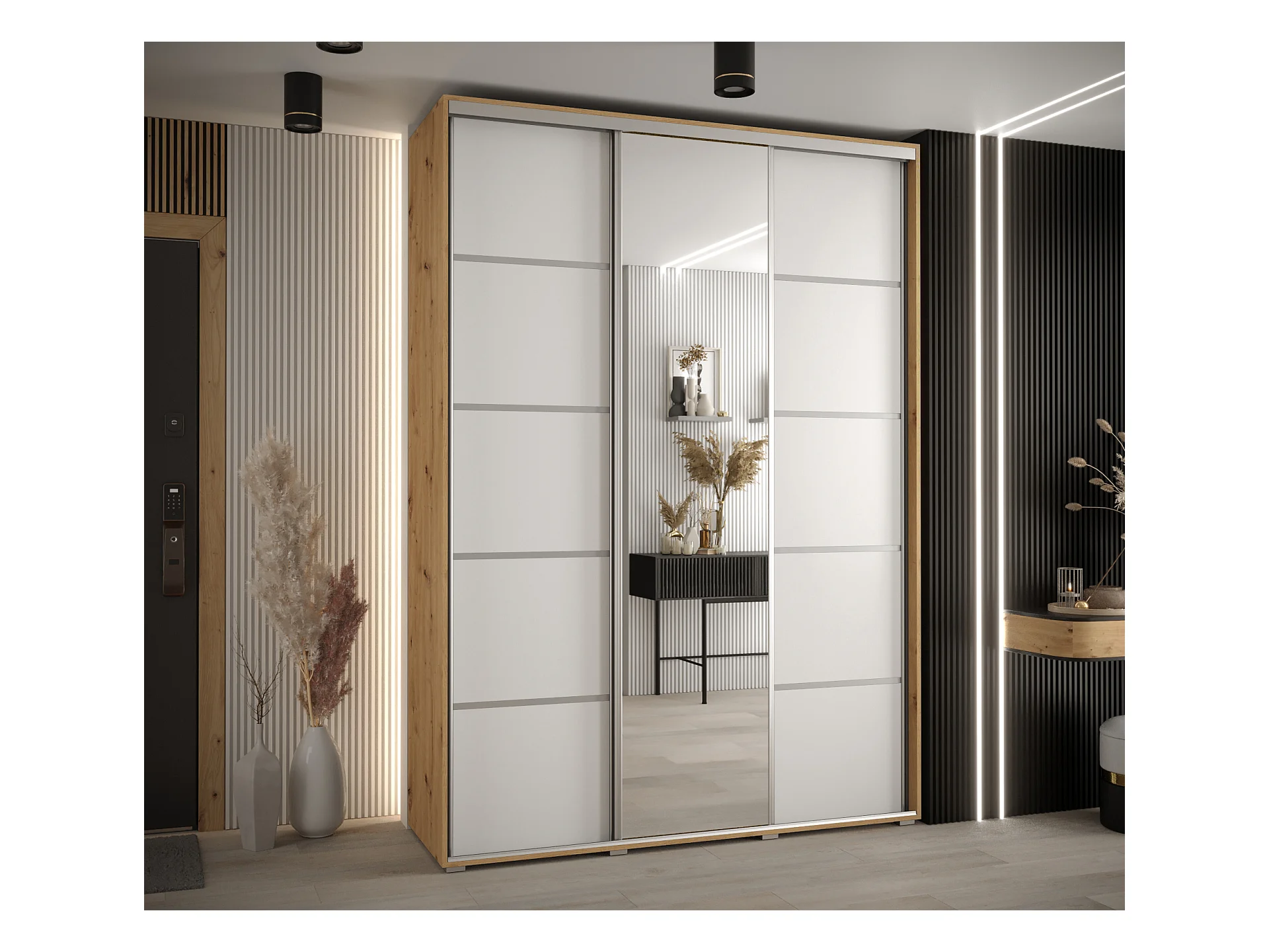 ARMOIRE DAVOS 5 À PORTES COULISSANTES 235,2/170/60 3 portes (Artisan/Blanc/Argent)