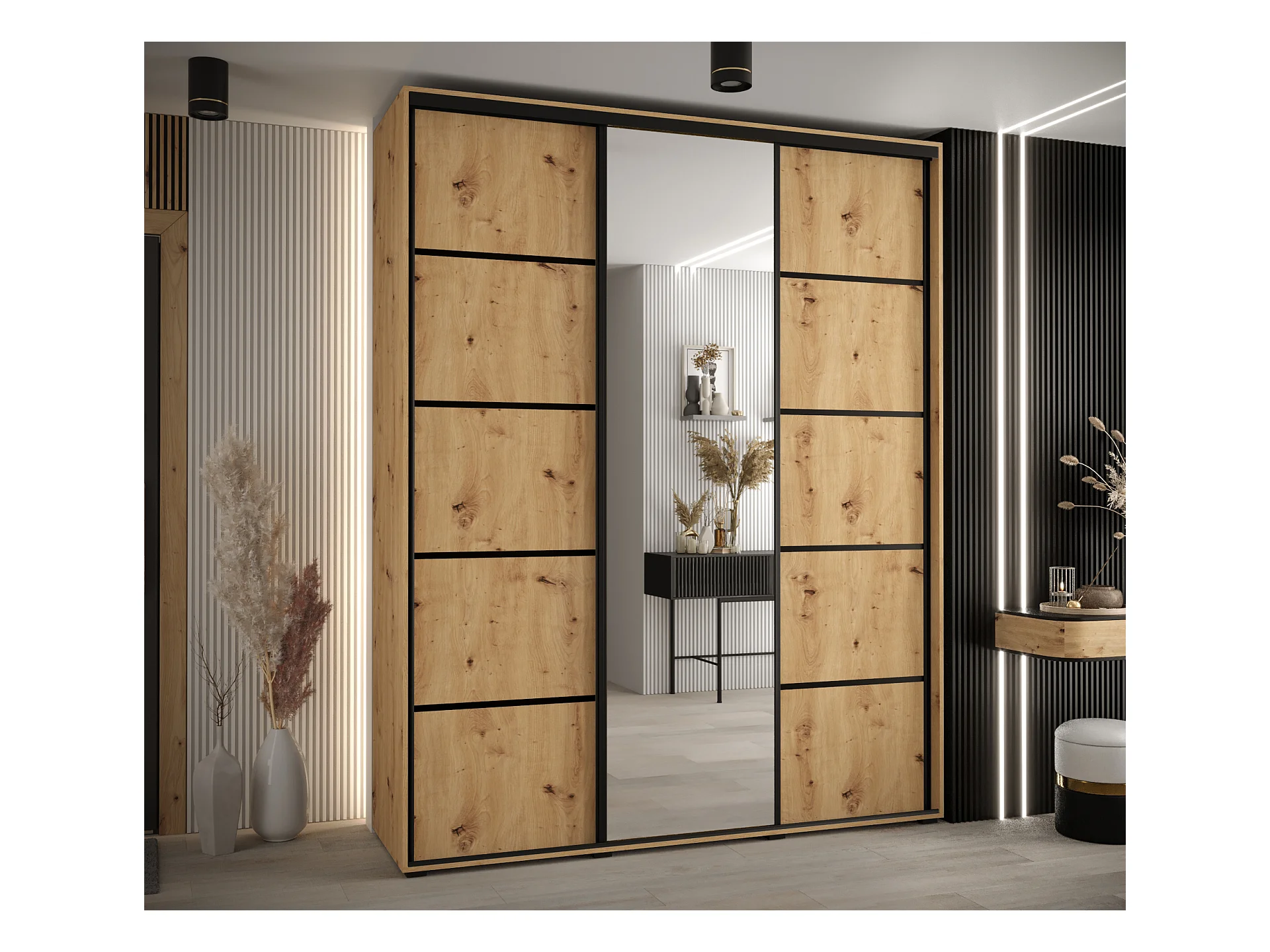 ARMOIRE DAVOS 5 À PORTES COULISSANTES 235,2/190/45 3 portes (Artisan/Artisan/Noir)