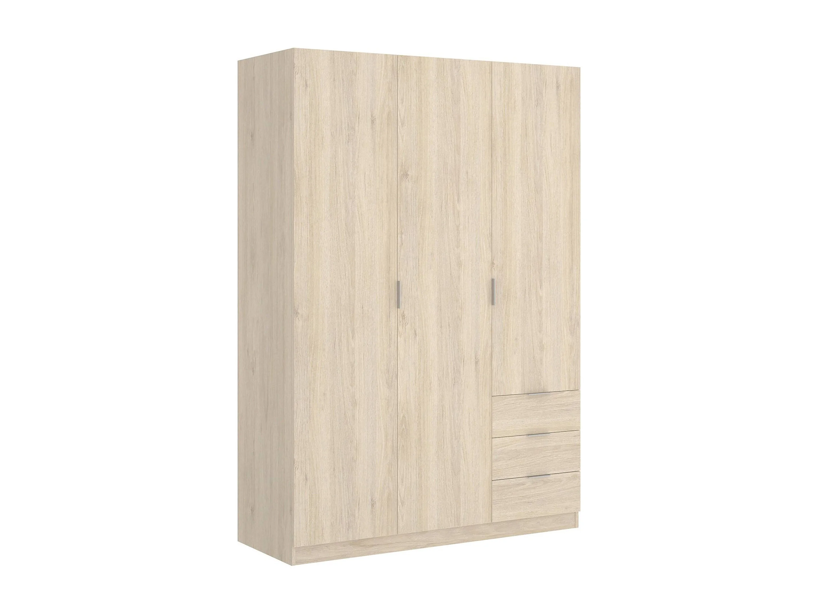 Armoire Dbarro, Cintre pour chambre à coucher, Armoire avec 3 portes battantes et 3 tiroirs, 121x52h184 cm, Chêne