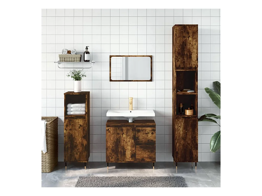 Armoire de bain chêne fumé 65x33x60 cm bois d'ingénierie FR16440