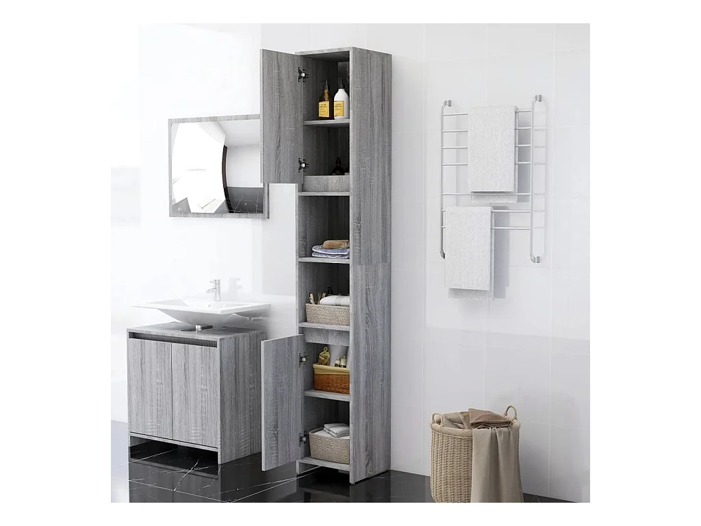 Armoire salle de bain sonoma gris 30x30x100 cm
