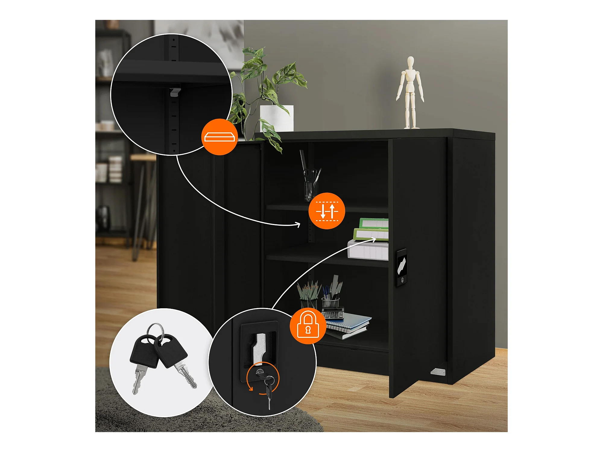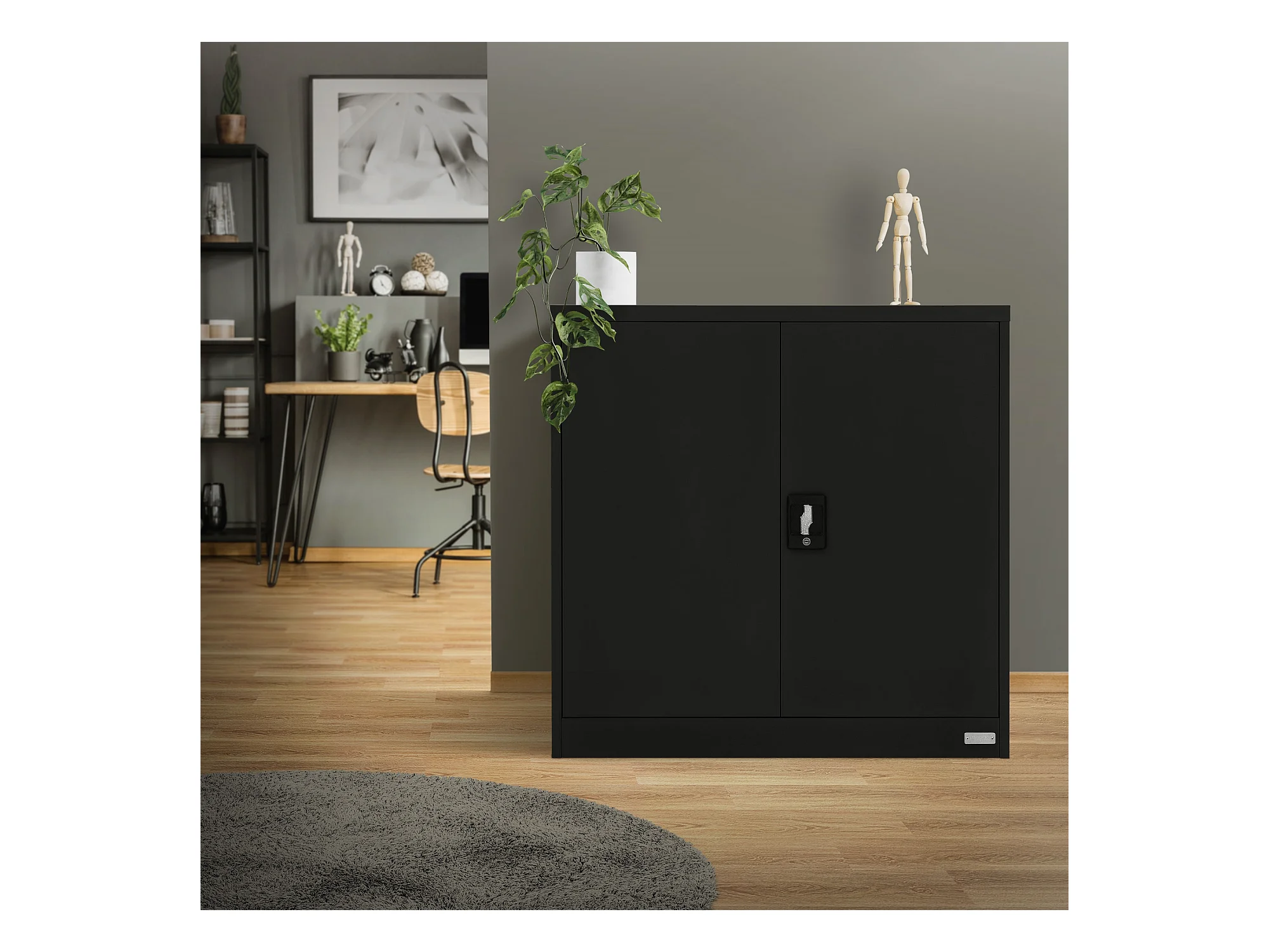 Armoire de bureau - Classeur noir 90x40x105 cm acier FR690105