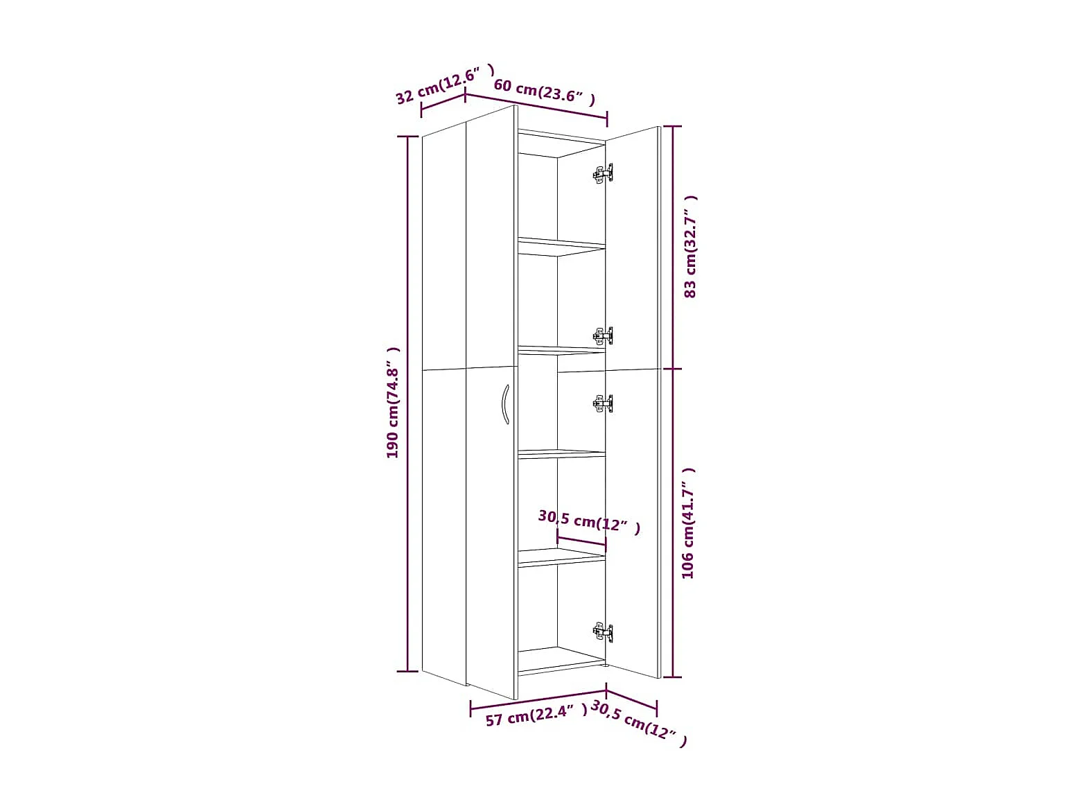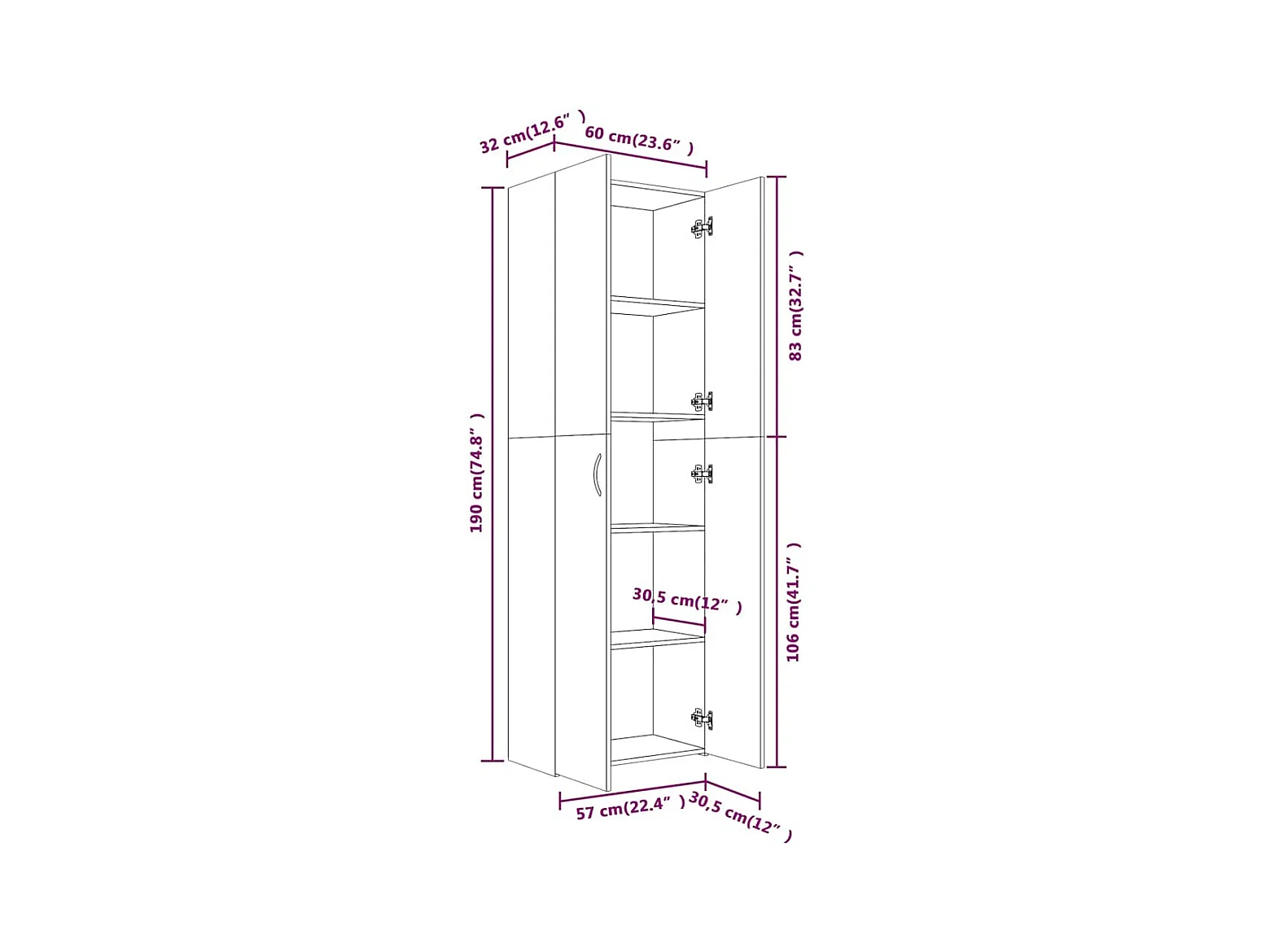 Armoire de bureau Sonoma gris 60x32x190 cm Bois d'ingénierie