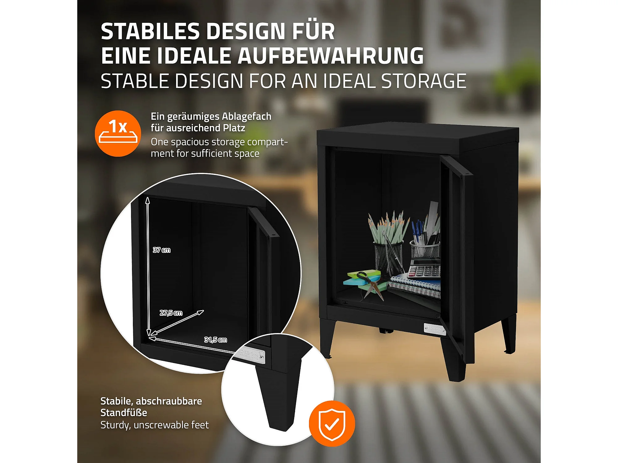 Armoire de classement noir en acier 40x30x57,5cm table de chevet stockage outils