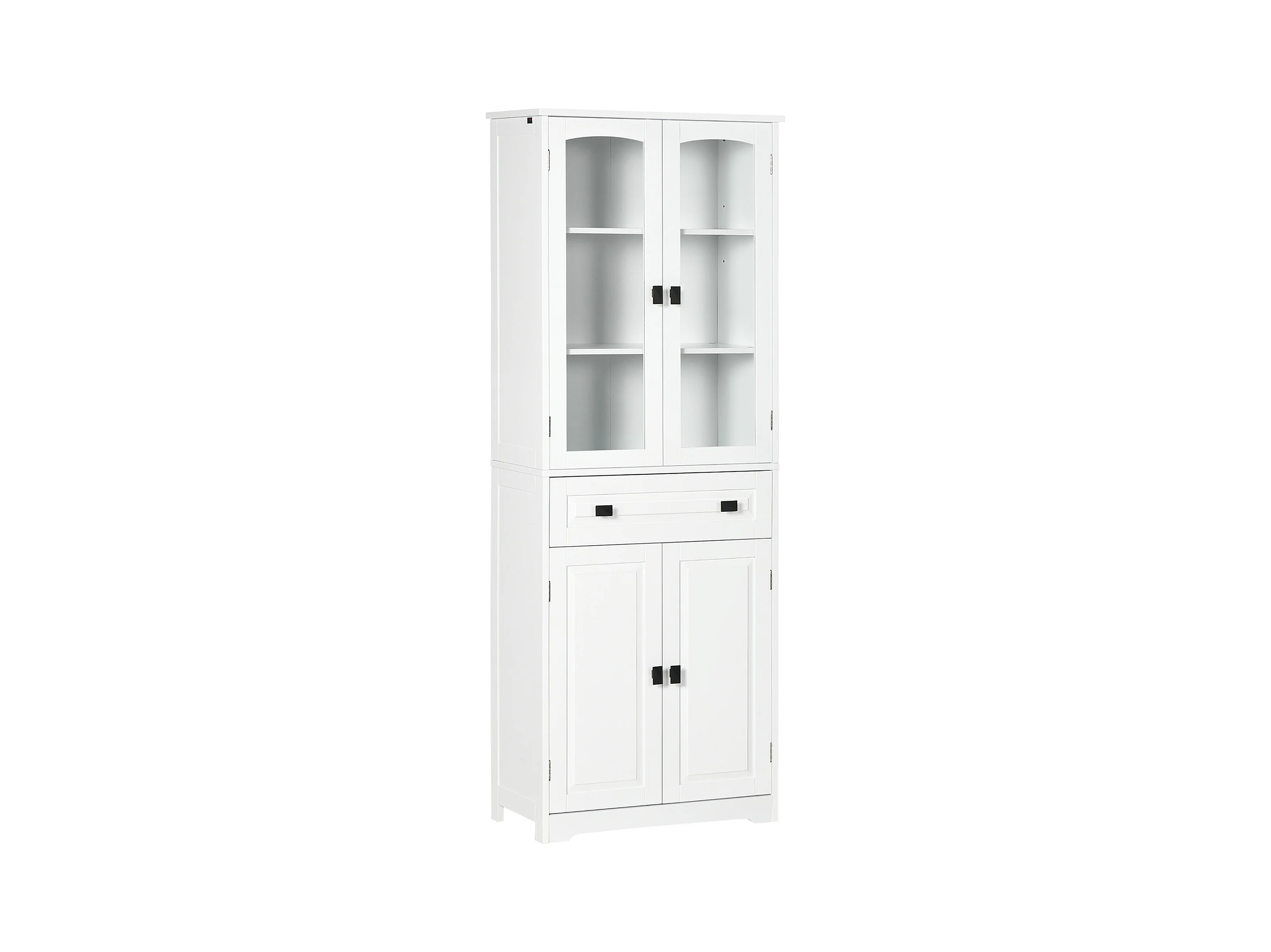 Armoire de cuisine buffet haut 4 portes 3 étagères tiroir verre trempé panneaux MDF blanc