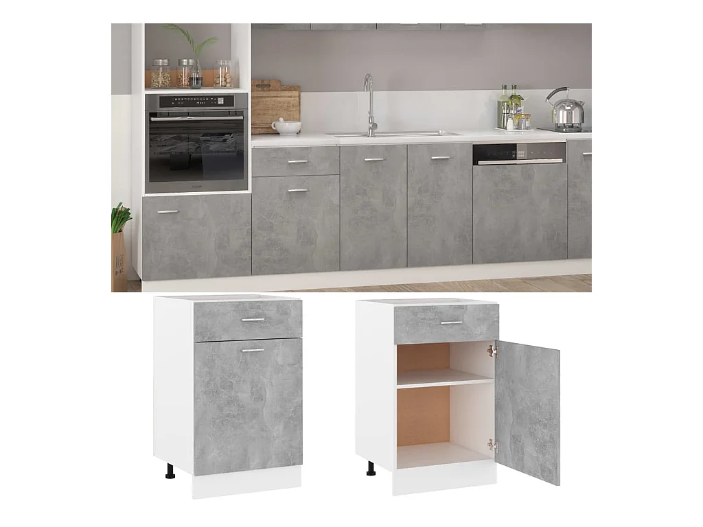Armoire de cuisine Lucca gris béton bois ingénierie
