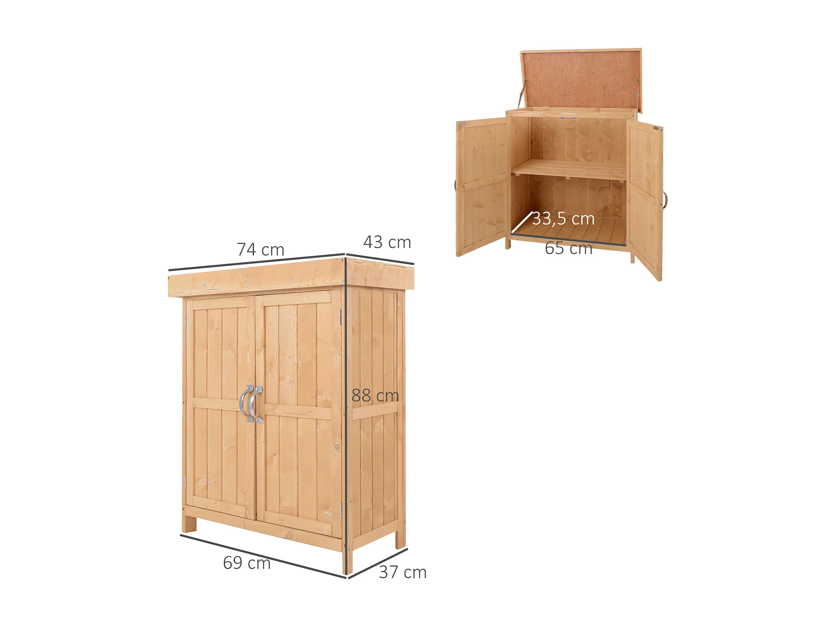 Armoire de jardin sur pied avec plateau - double porte, étagère - bois de sapin pré-huilé
