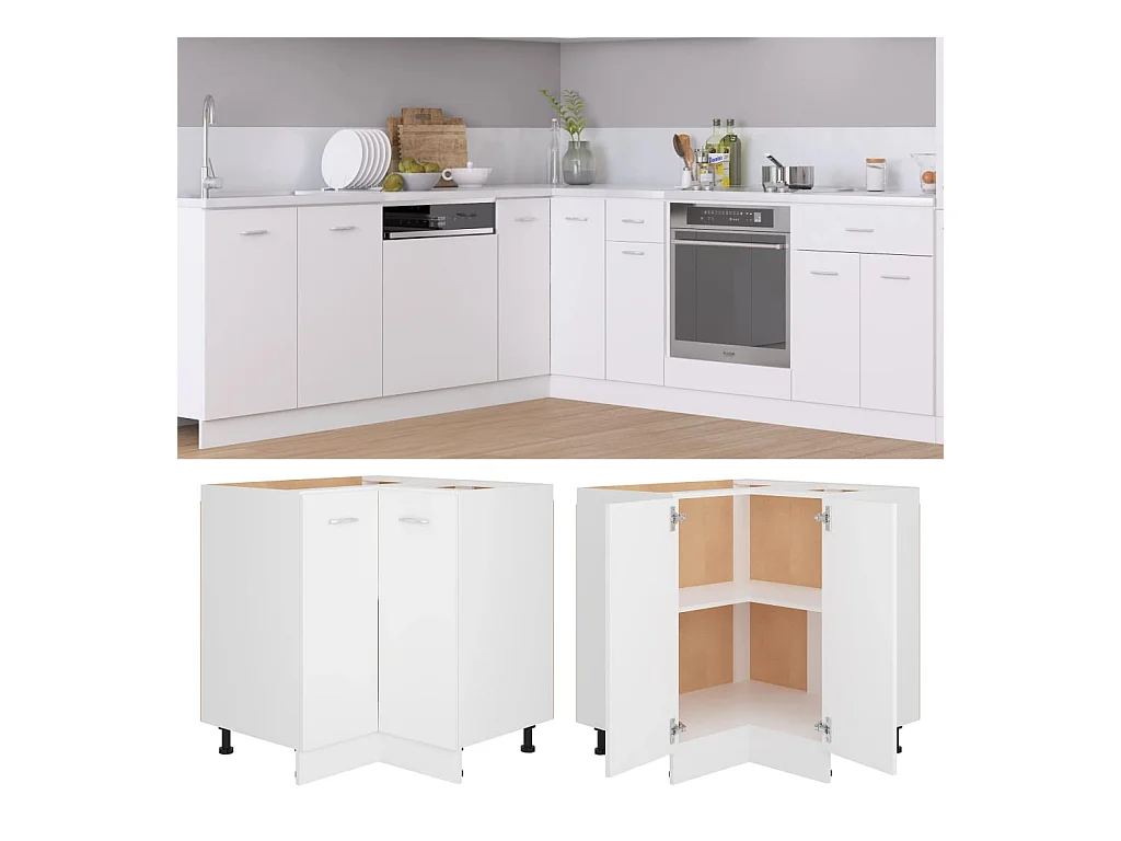 Armoire d'angle de cuisine blanc bois d'ingénierie