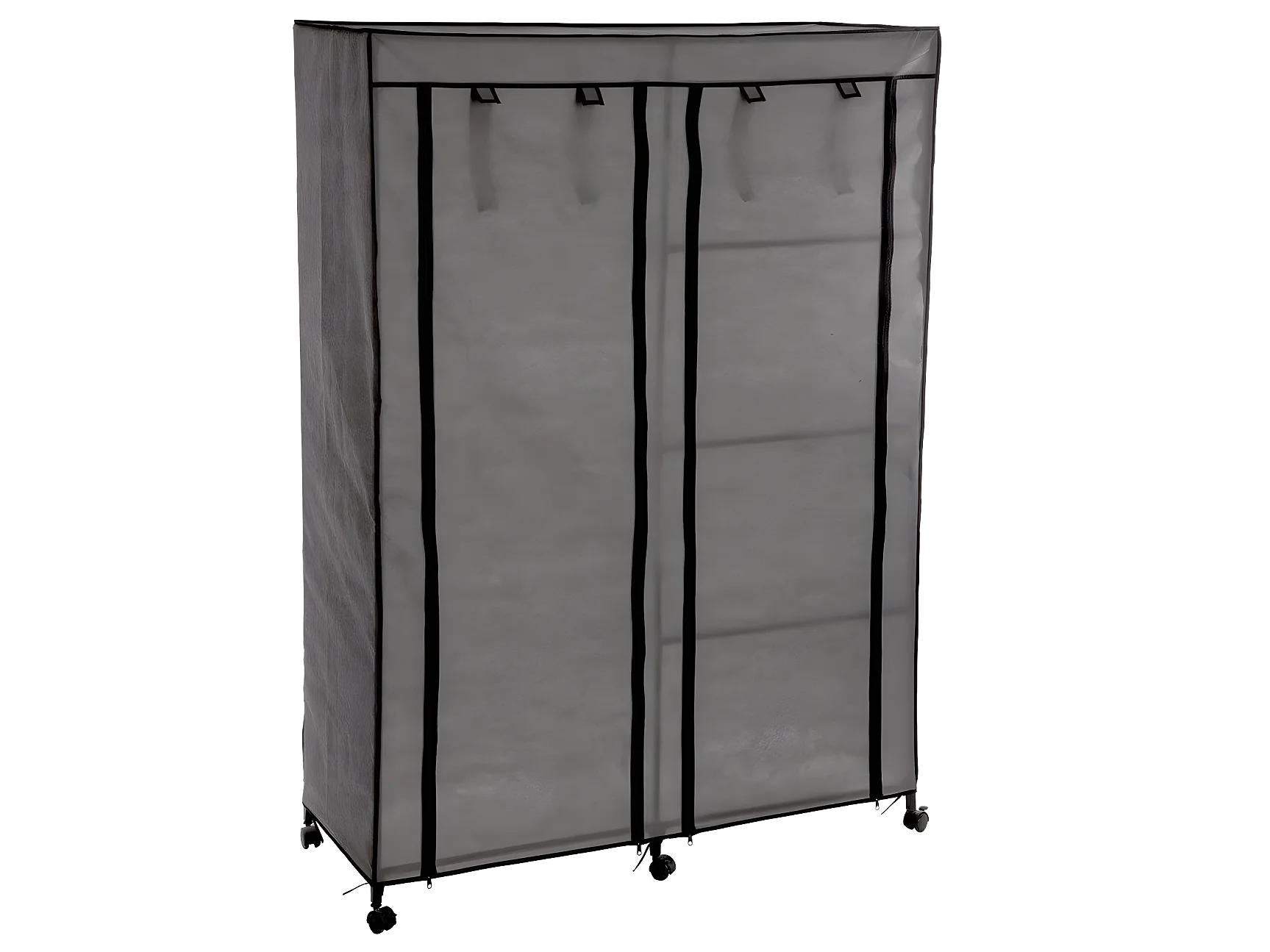 Armoire de rangement avec penderie sur roulettes coloris gris - Longueur 118 x Profondeur 49 x Hauteur 168 cm