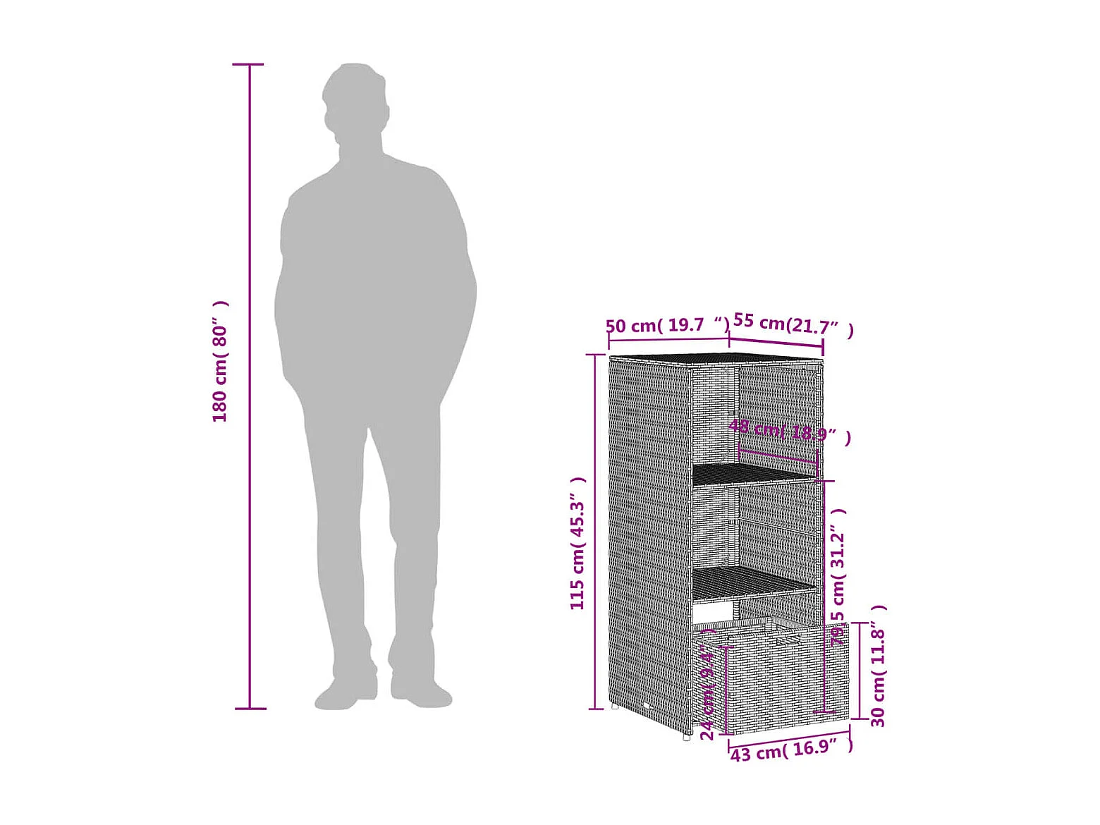Armoire de rangement de jardin gris 50x55x115 cm résine tressée