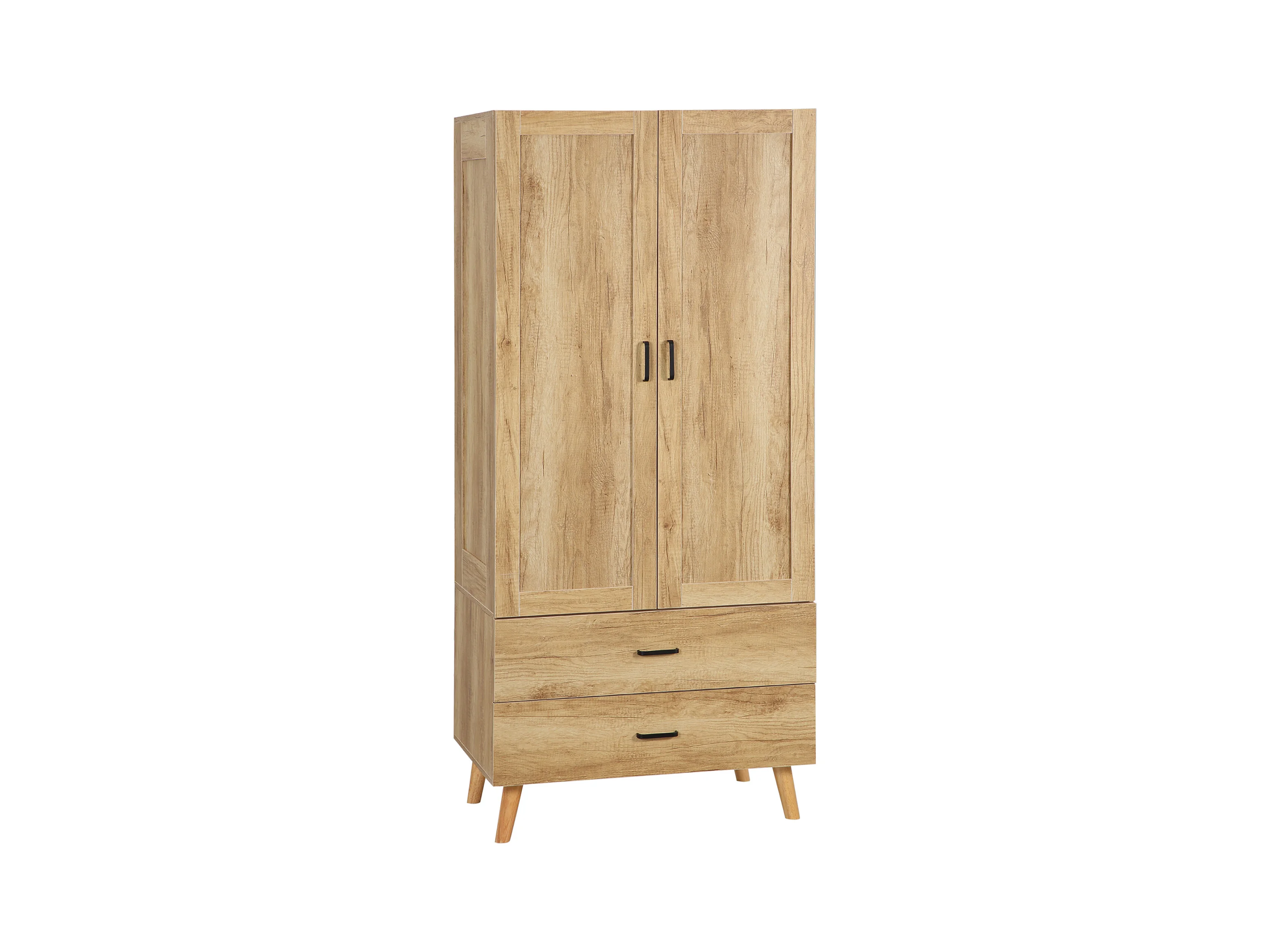 Armoire de rangement design scandinave - armoire de chambre - placard 2 portes avec penderie - 2 tiroirs - aspect chêne clair