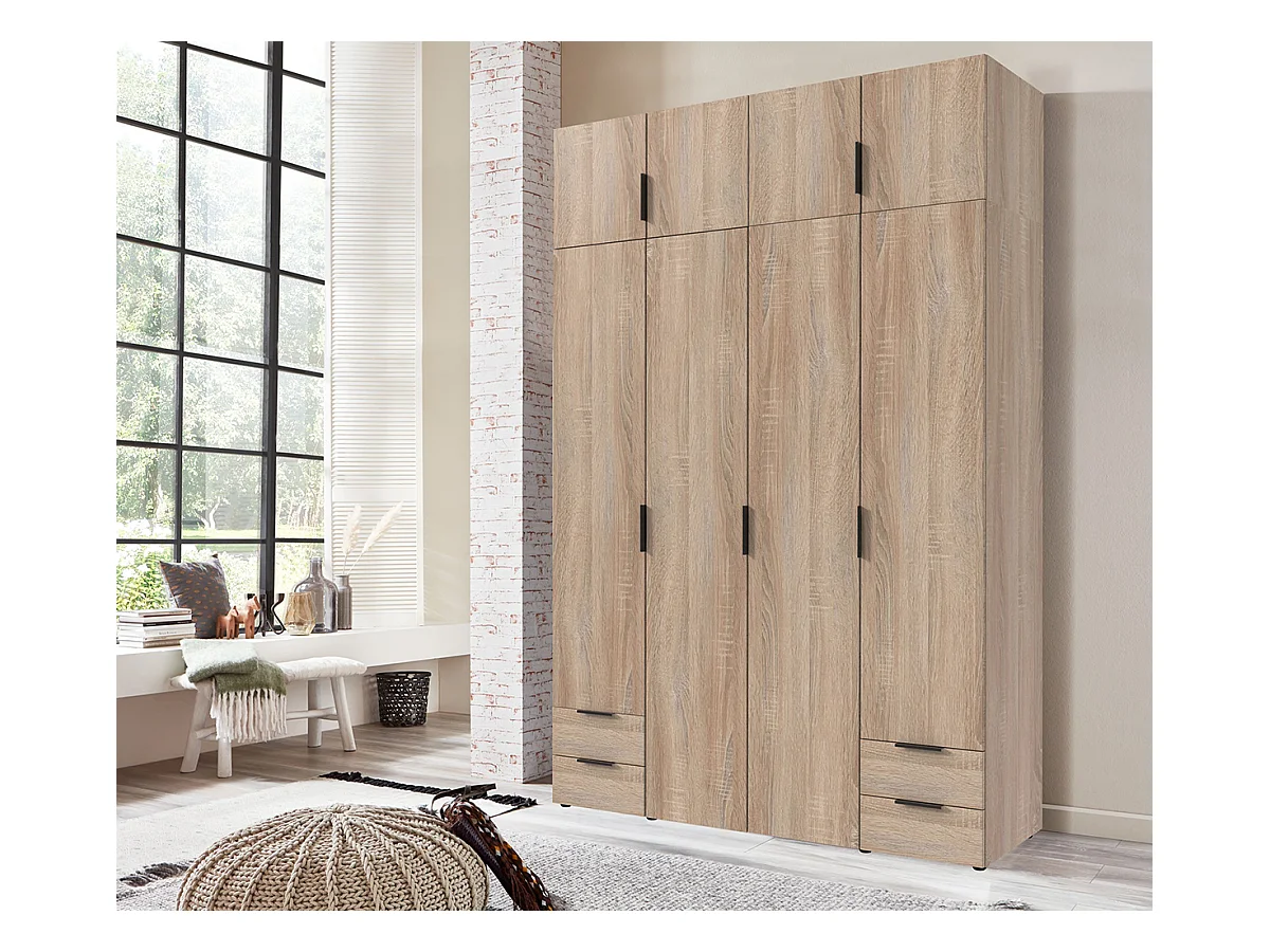 Armoire de rangement, placard de rangement en bois mélamine coloris Imitation chêne - Longueur 160 x Hauteur 225 x Profondeur 54 cm