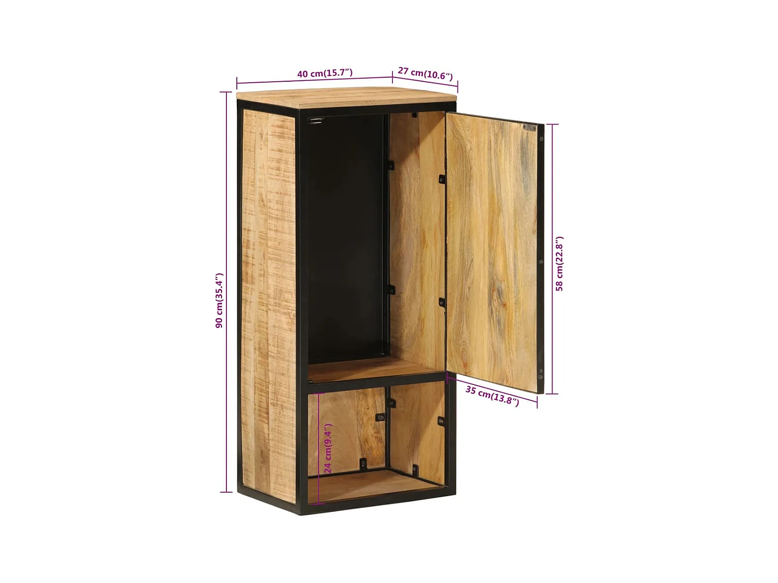 Armoire de salle de bain 40x27x90 bois massif manguier et fer