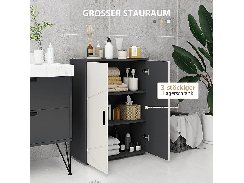 Armoire de salle de bain à double porte, étagères réglables, bois mélaminé, gris clair et foncé, pratique et spacieux (60x30x82cm)