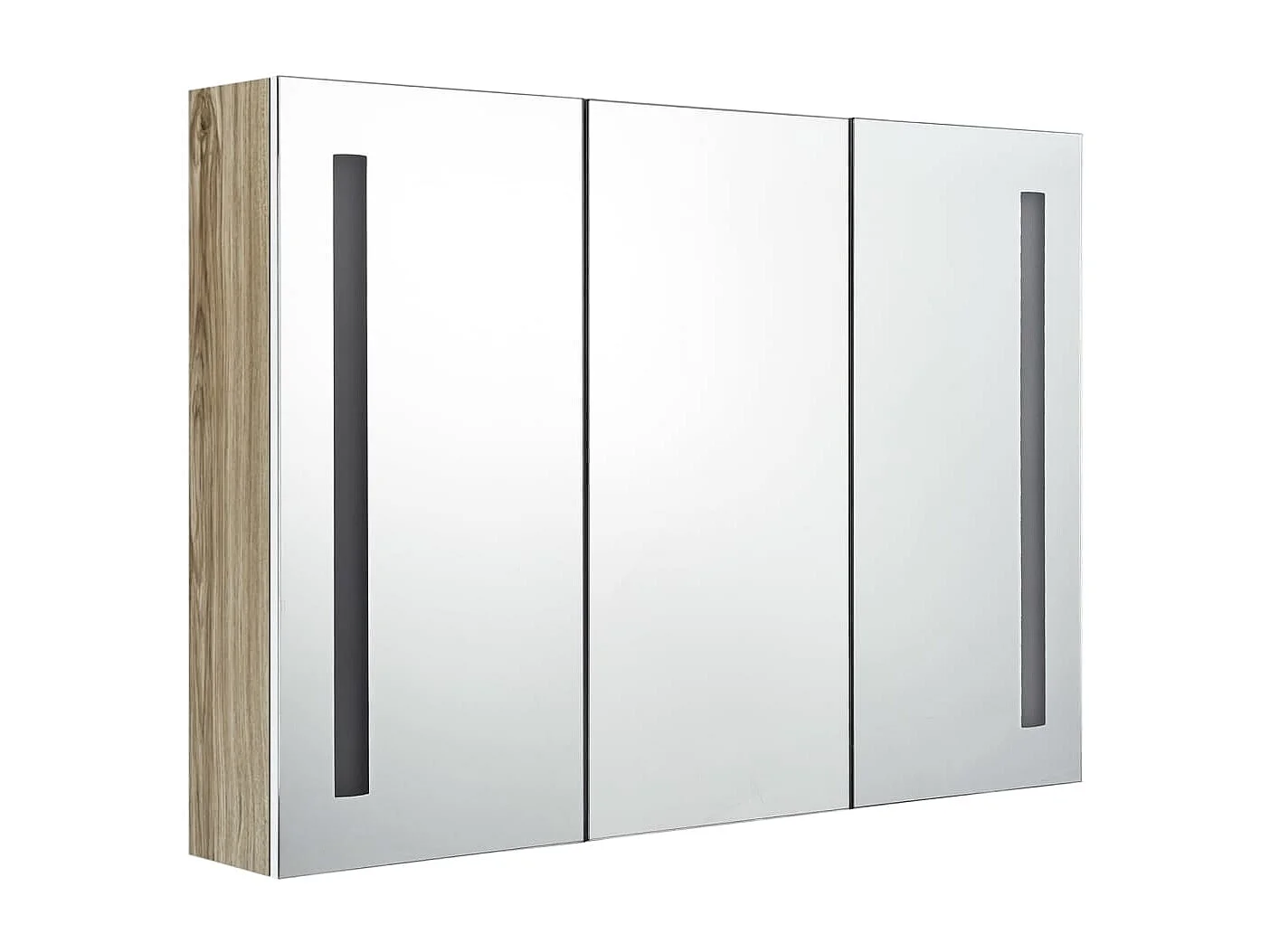 Armoire de salle de bain à miroir LED 89x14x62 Blanc et chêne