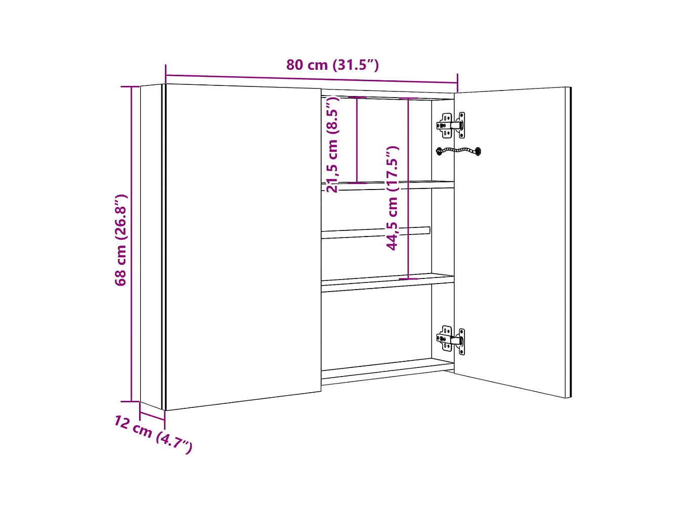 Armoire de salle de bain à miroir LED Chêne 80x12x68 cm