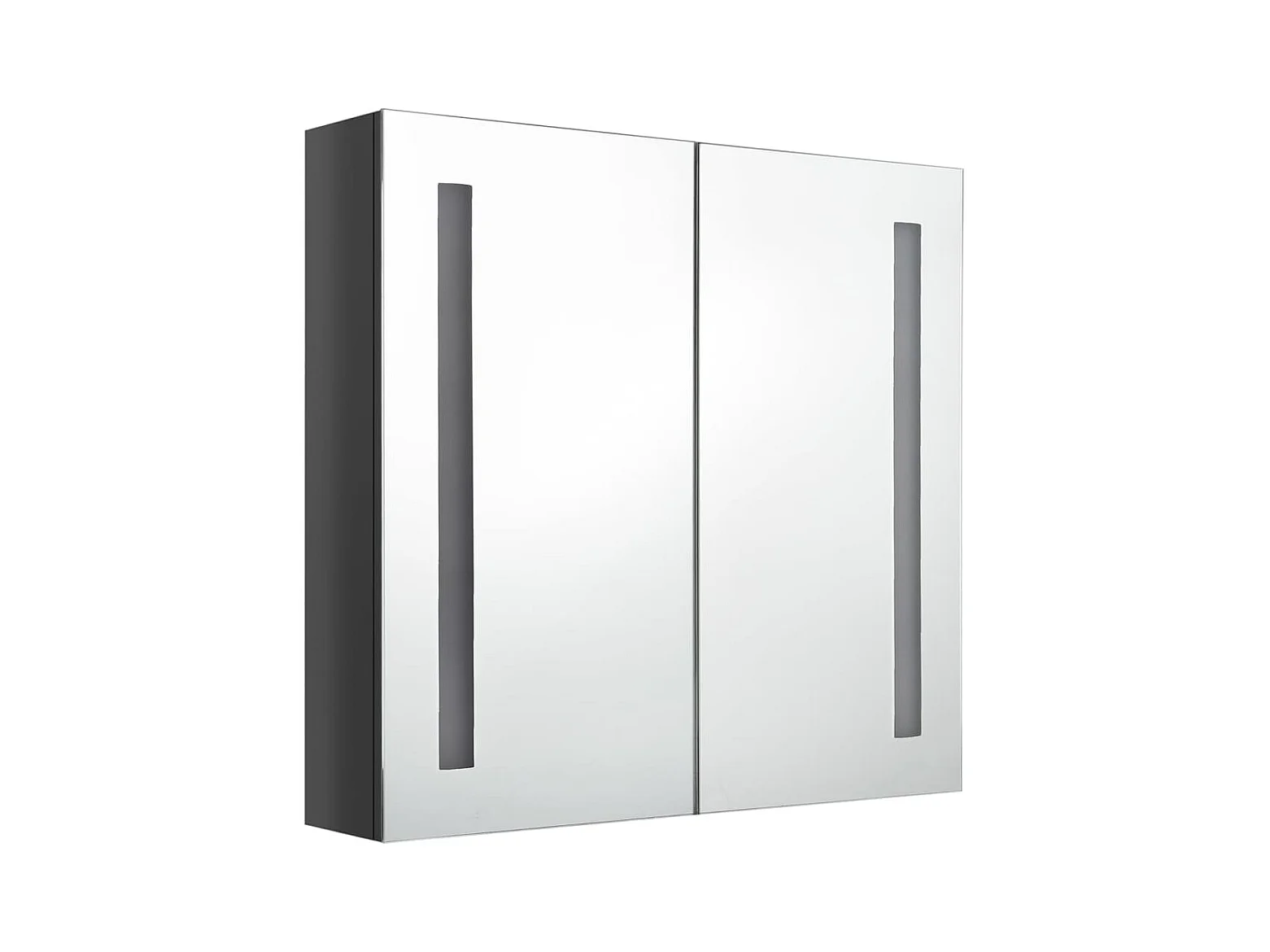 Armoire de salle de bain à miroir LED Gris brillant 62x14x60
