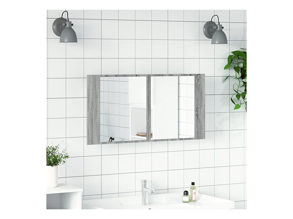 Armoire de salle de bain à miroir LED sonoma gris 90x12x45