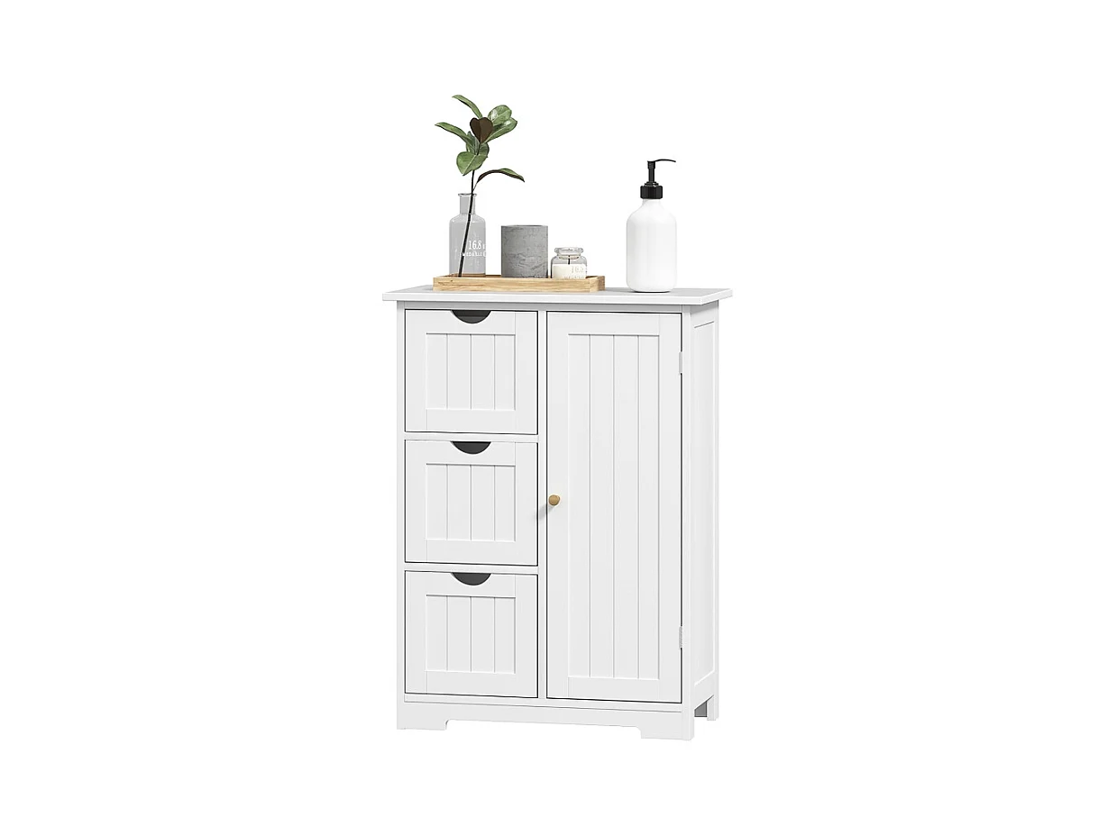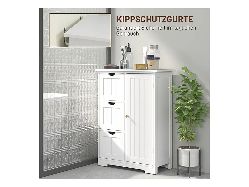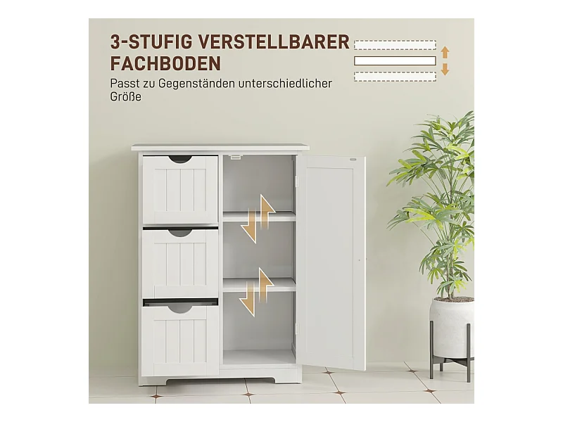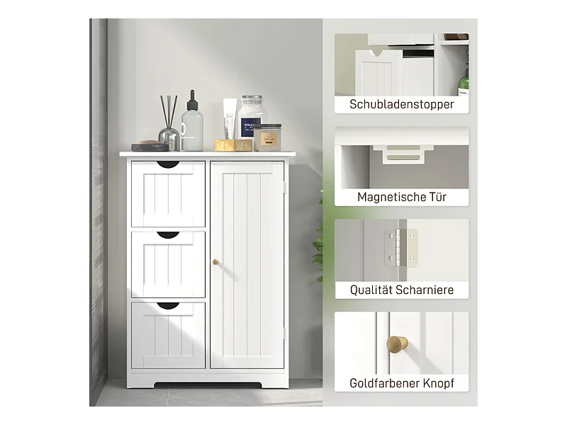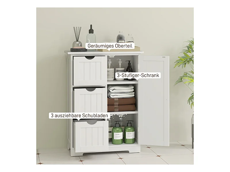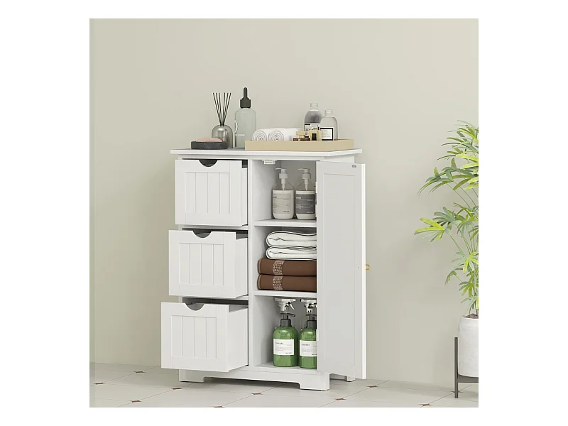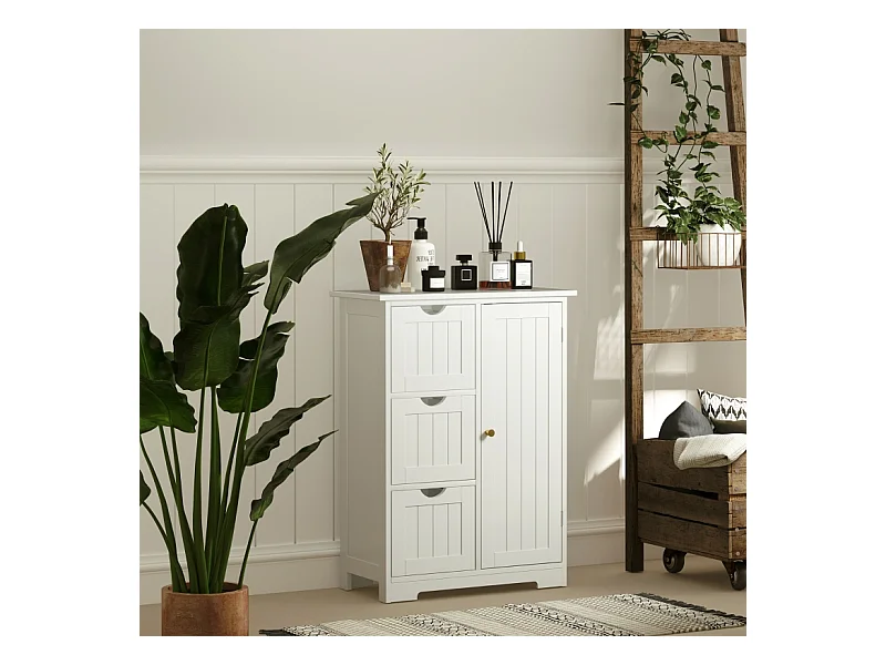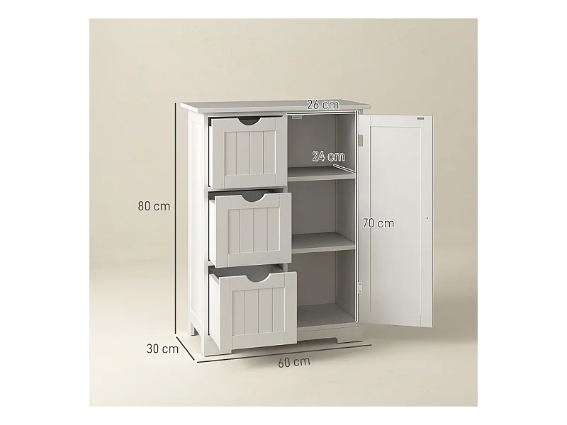 Armoire de salle de bain avec 3 tiroirs, étagère réglable, bois, blanc (60x30x80 cm)