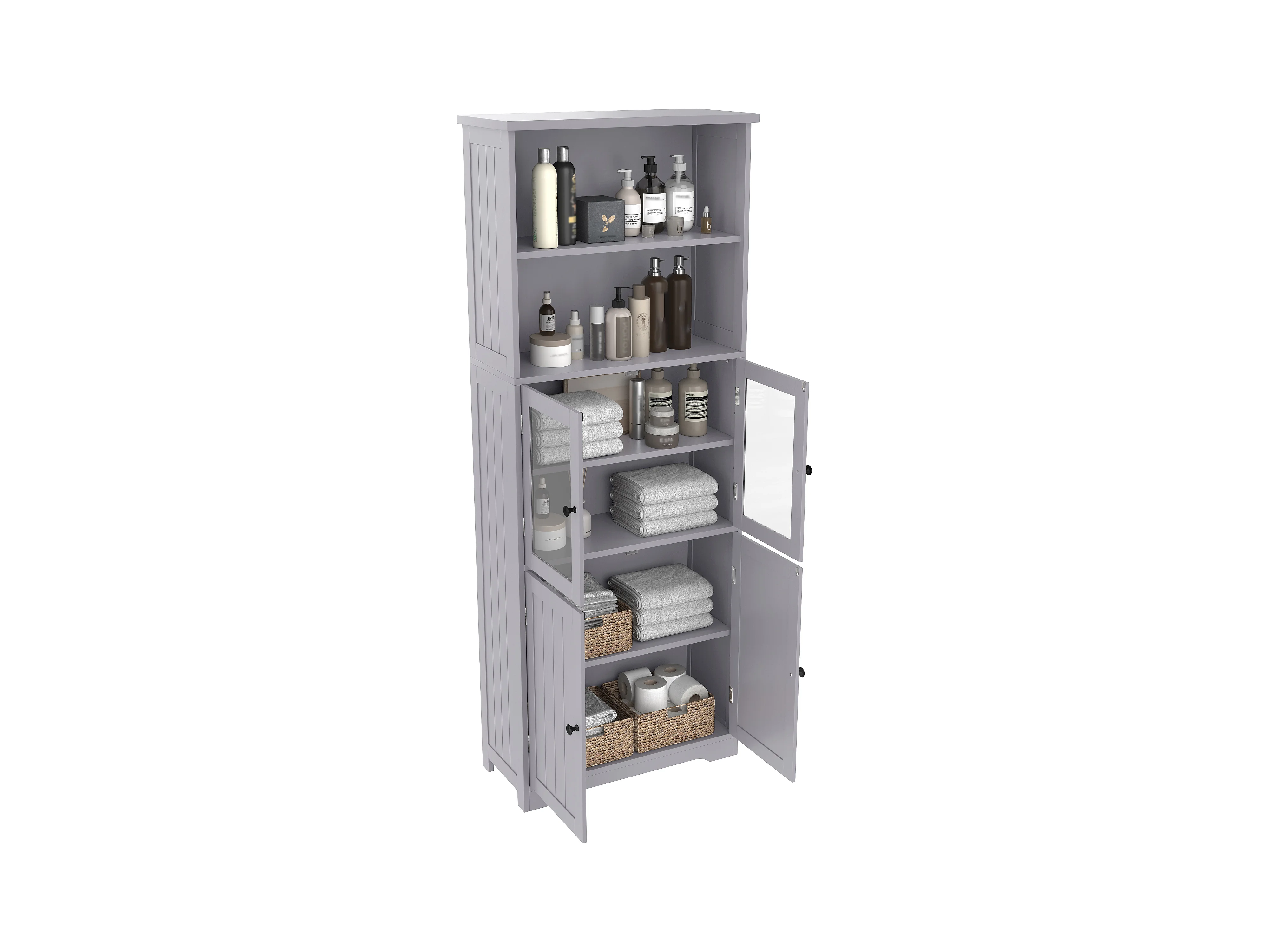 Armoire de salle de bain avec portes en bois et verre, étagères ajustables, peinture résistante à l'humidité, gris, (57.4x28.5x160 cm)