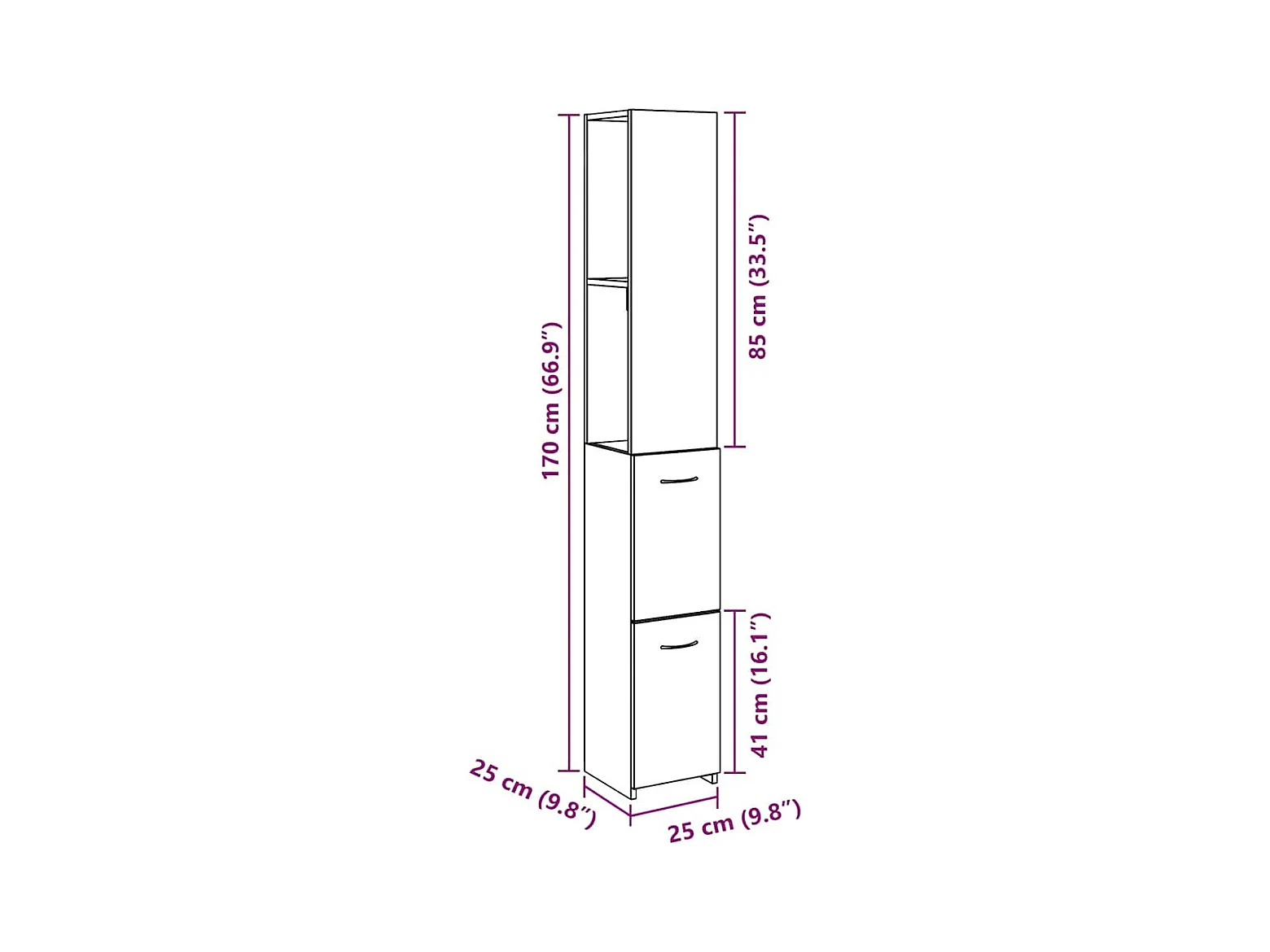 Armoire de salle de bain vieux bois 25x25x170cm bois ingénierie