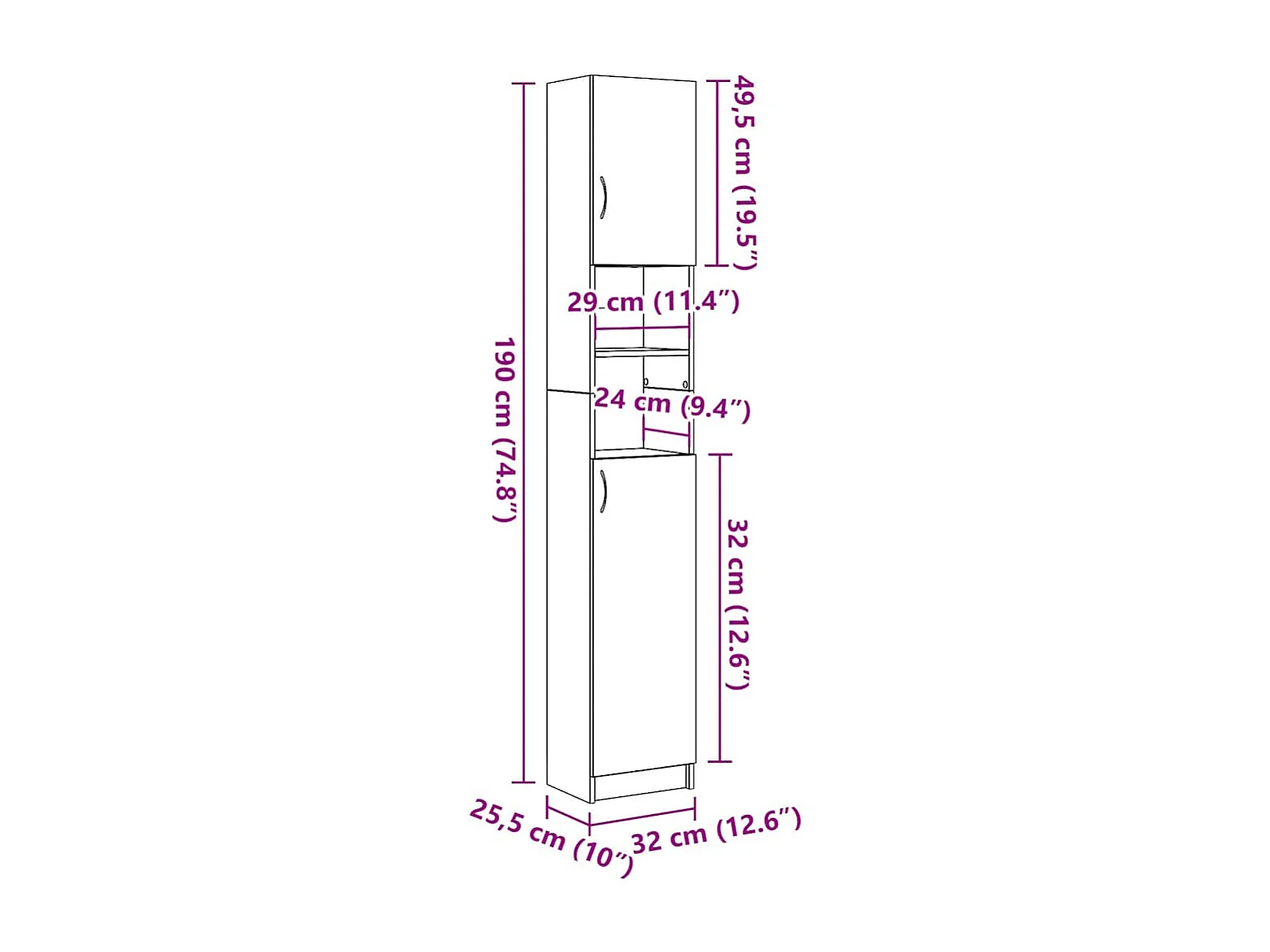 Armoire de salle de bain chêne artisanal 30x30x190 cm
