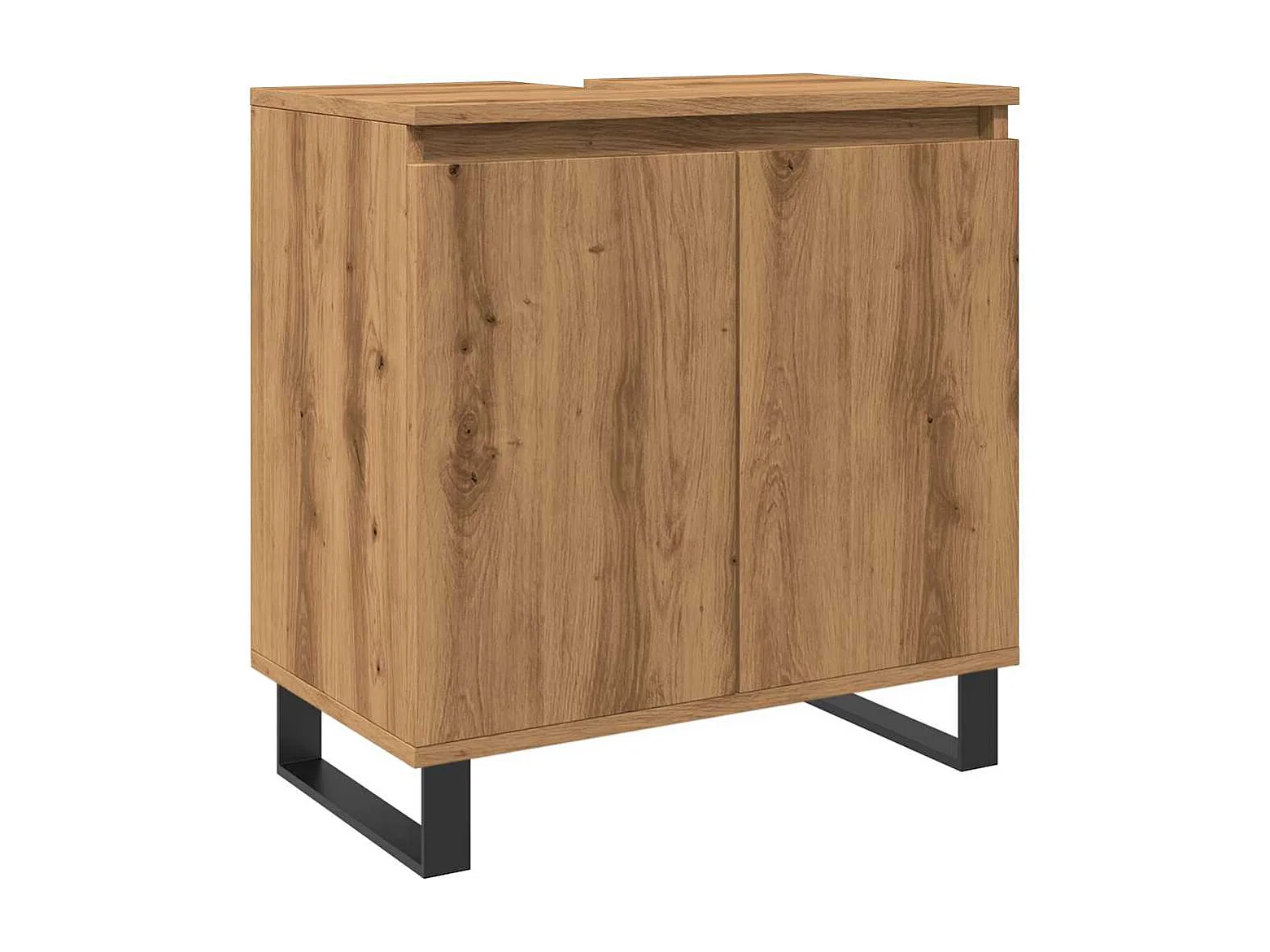 Meuble sous lavabo de salle de bain - Chêne artisanal doré et noir mat - L40-H60-P22 - ARRIBA