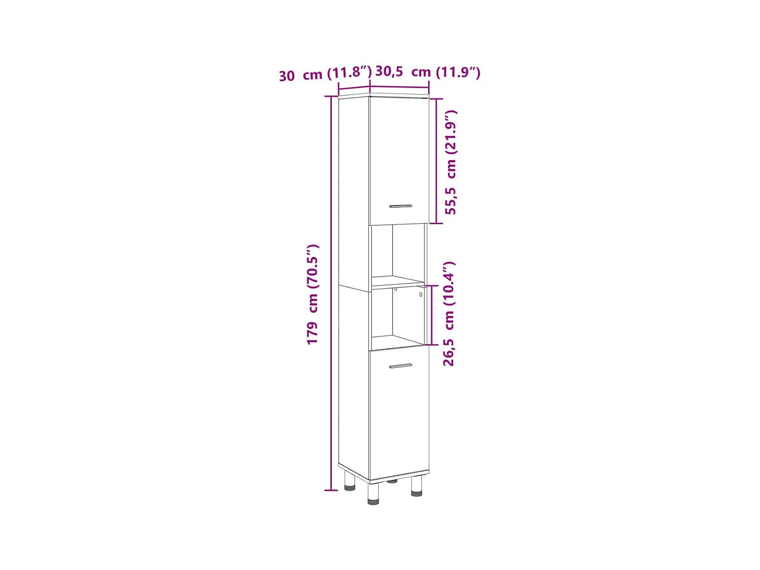 Armoire de salle de bain Chêne sonoma 30x30x183,5 cm Aggloméré