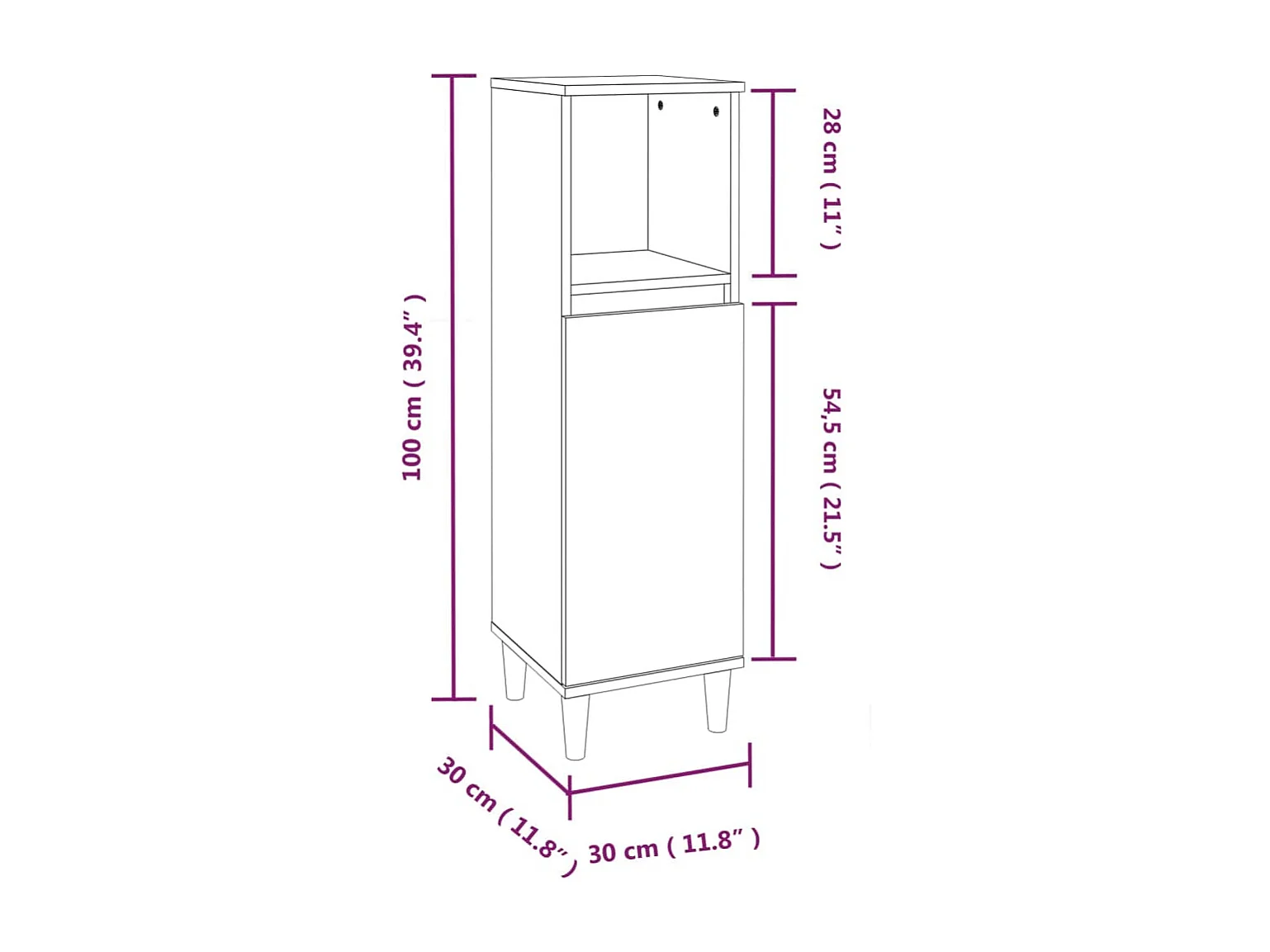 Armoire salle de bain sonoma gris 30x30x100 cm