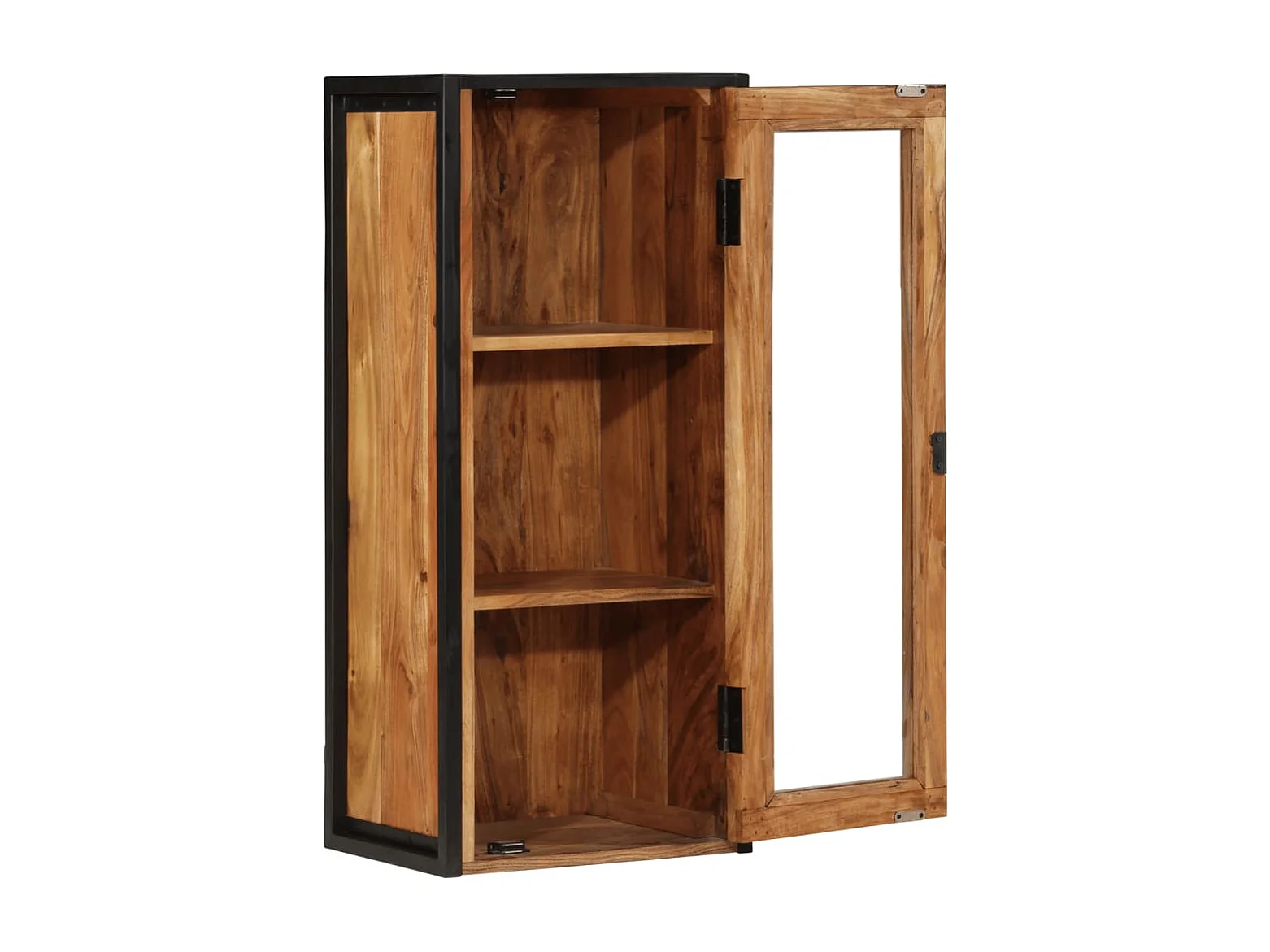 Armoire de salle de bain murale bois massif d'acacia et fer
