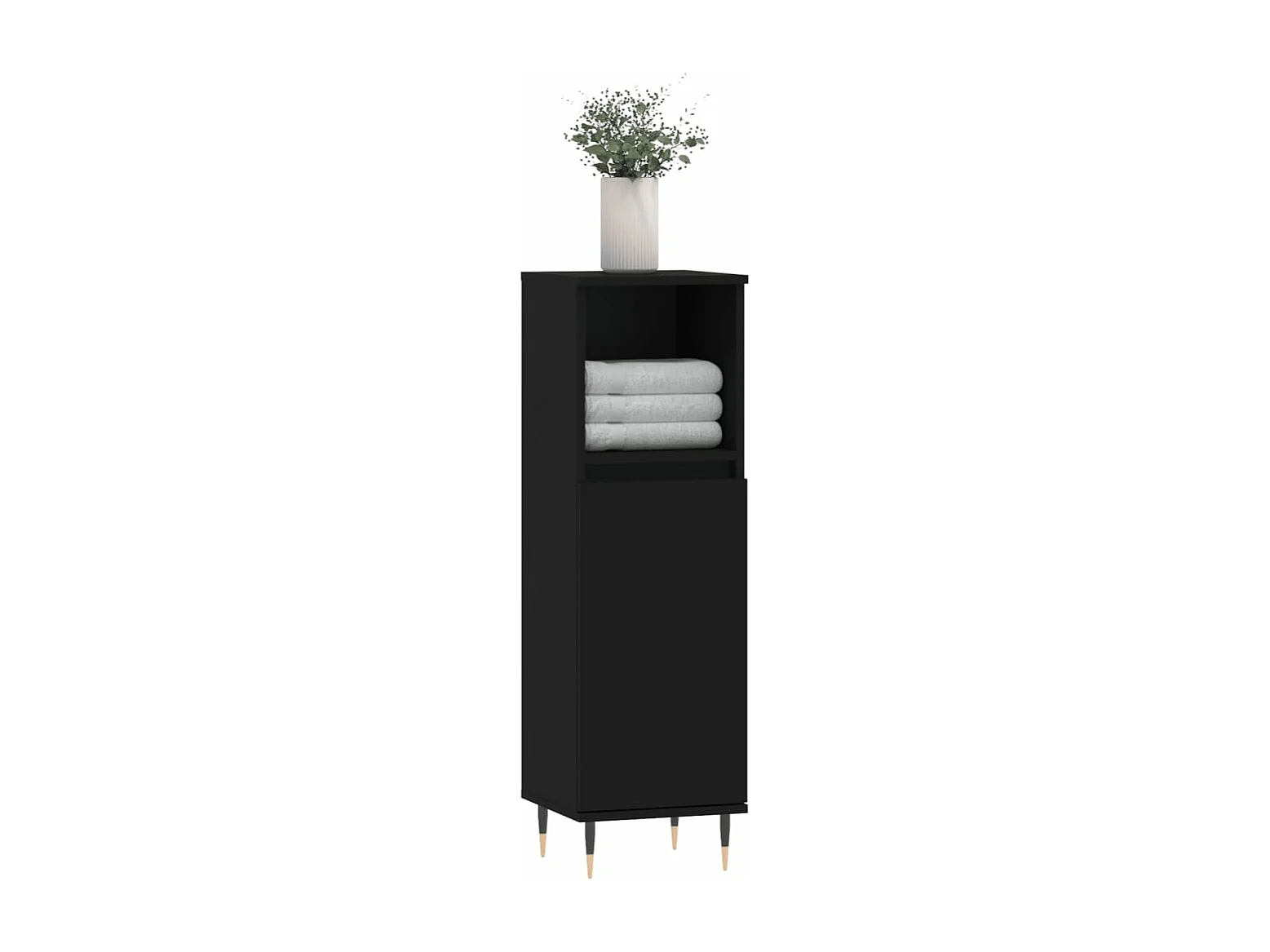Armoire de salle de bain noir 30x30x100 bois d'ingénierie
