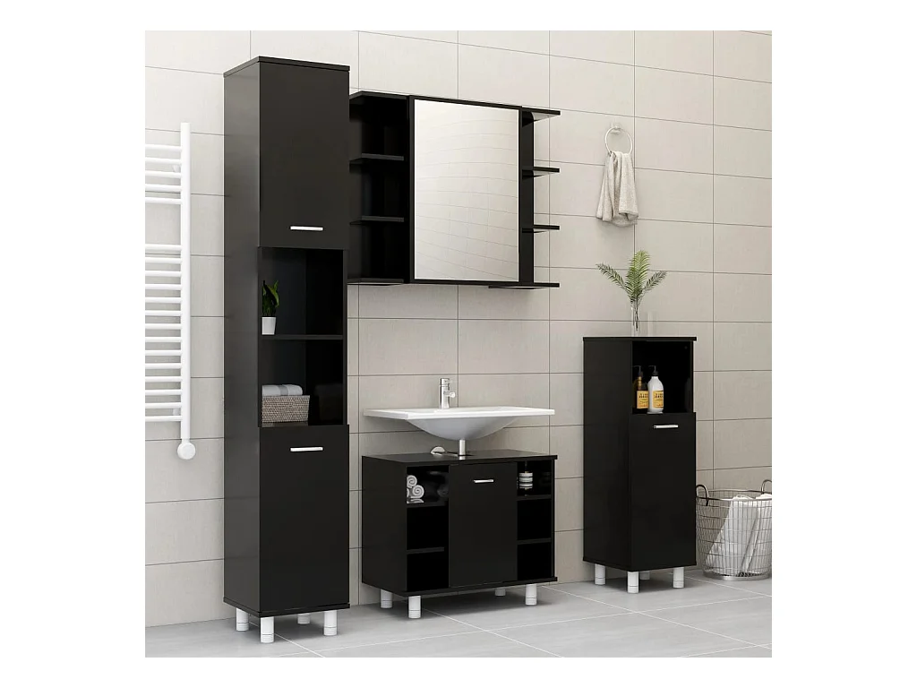 Armoire de salle de bain noir 30x30x100 bois d'ingénierie