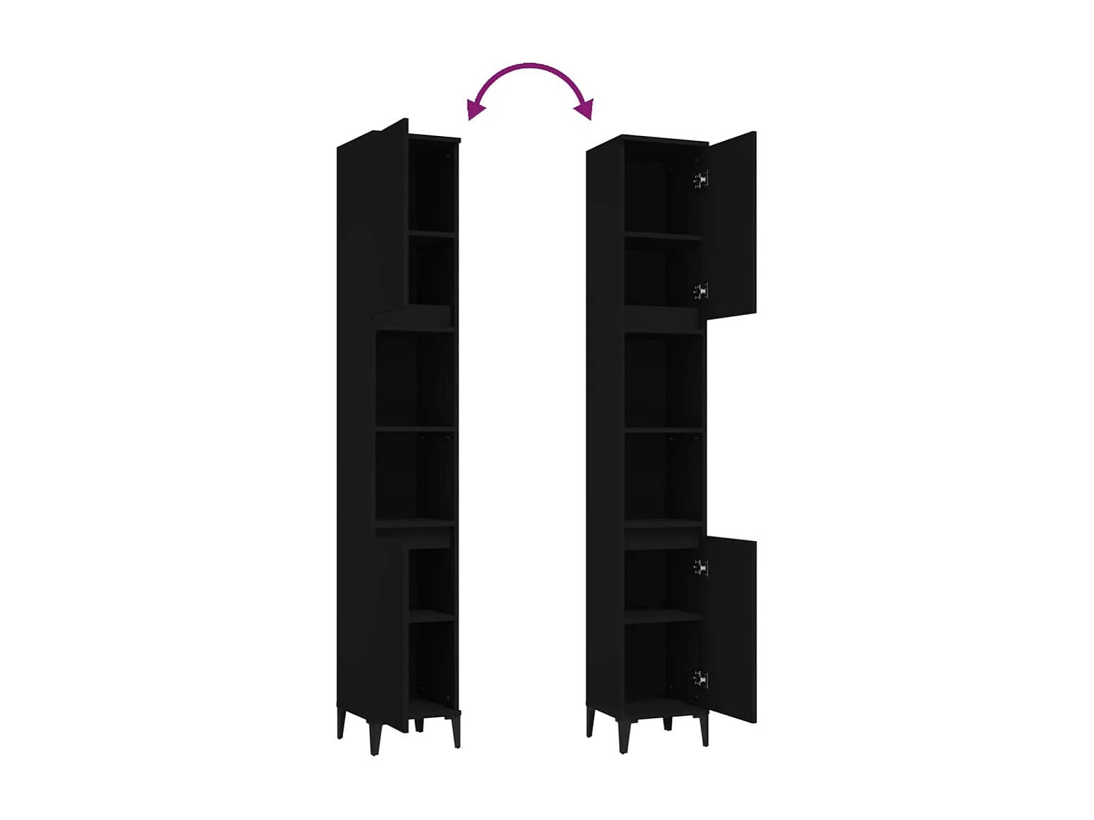 Armoire de salle de bain noir 30x30x190 bois d'ingénierie