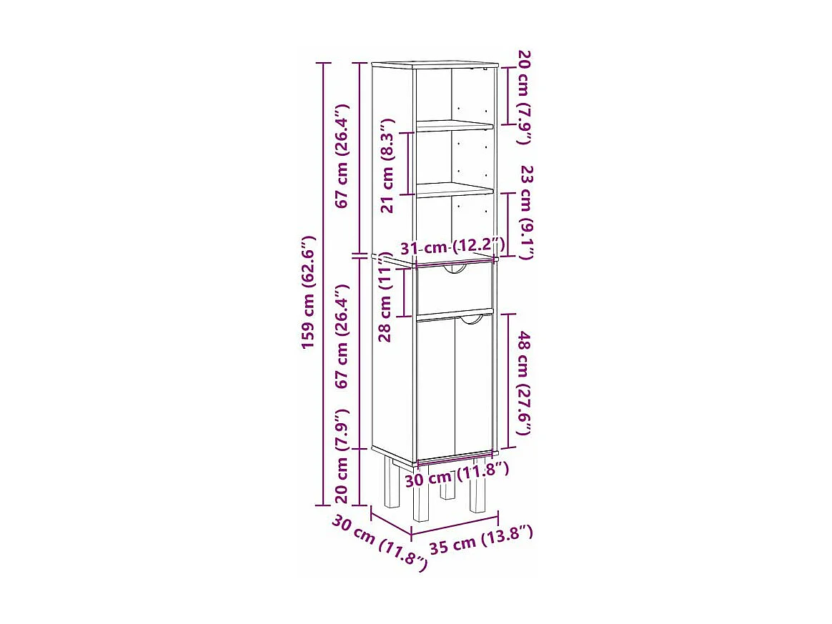 Armoire de salle de bain OTTA 35x30x159 bois massif de pin