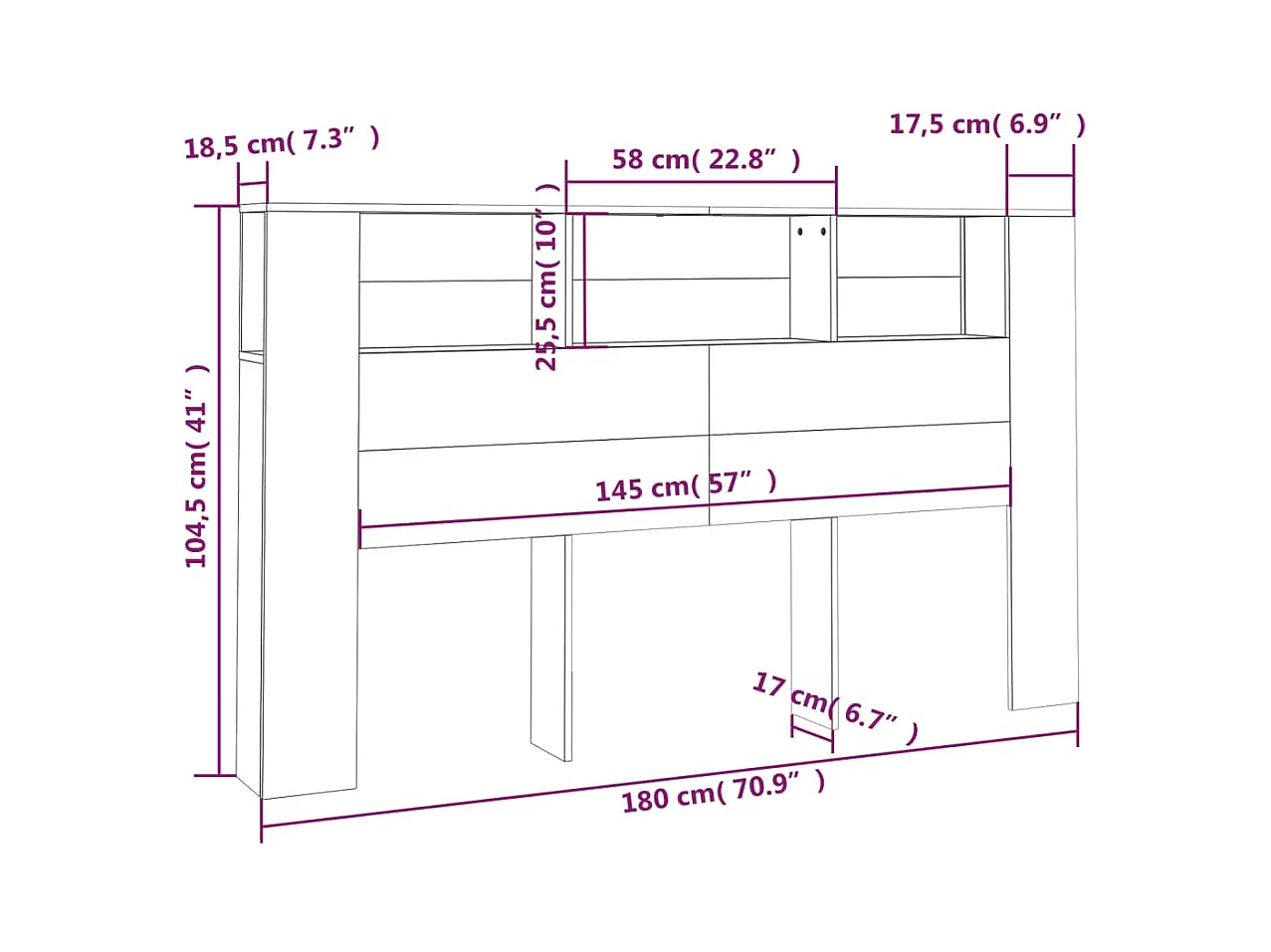 Armoire tête de lit avec LED blanc 180x17x102 cm