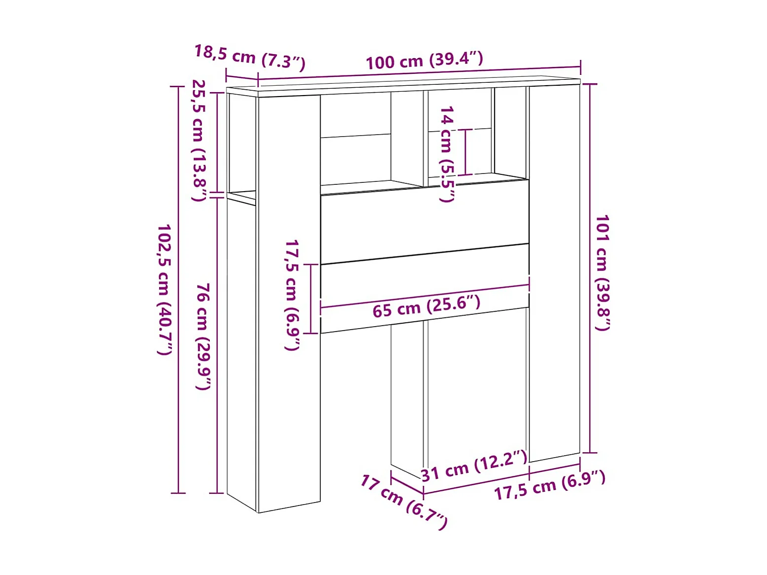 Armoire de tête de lit vieux bois 100x18,5x102,5 cm