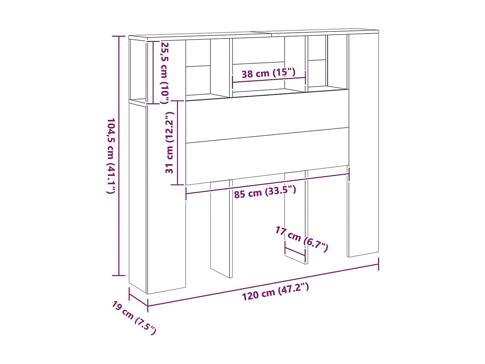Tête de lit de rangement Chêne fumé 120 cm Bois d'ingénierie