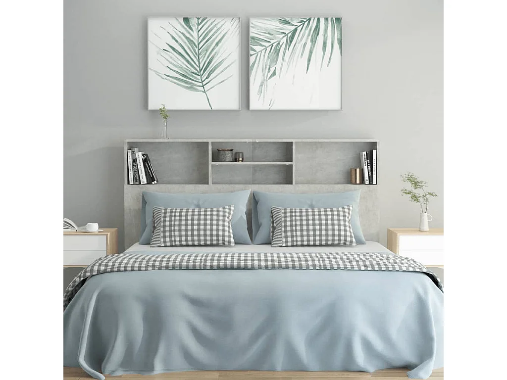 Armoire de tête de lit Gris béton 180x19x103,5 cm POI39879 BonneVie Meuble