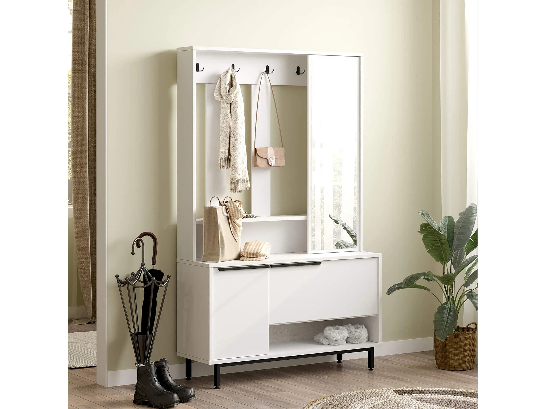 Armoire d'entrée Rebecca Mobili Mikan 178x112x33,5 Panneau de particules Verre Blanc Gris Foncé Moderne