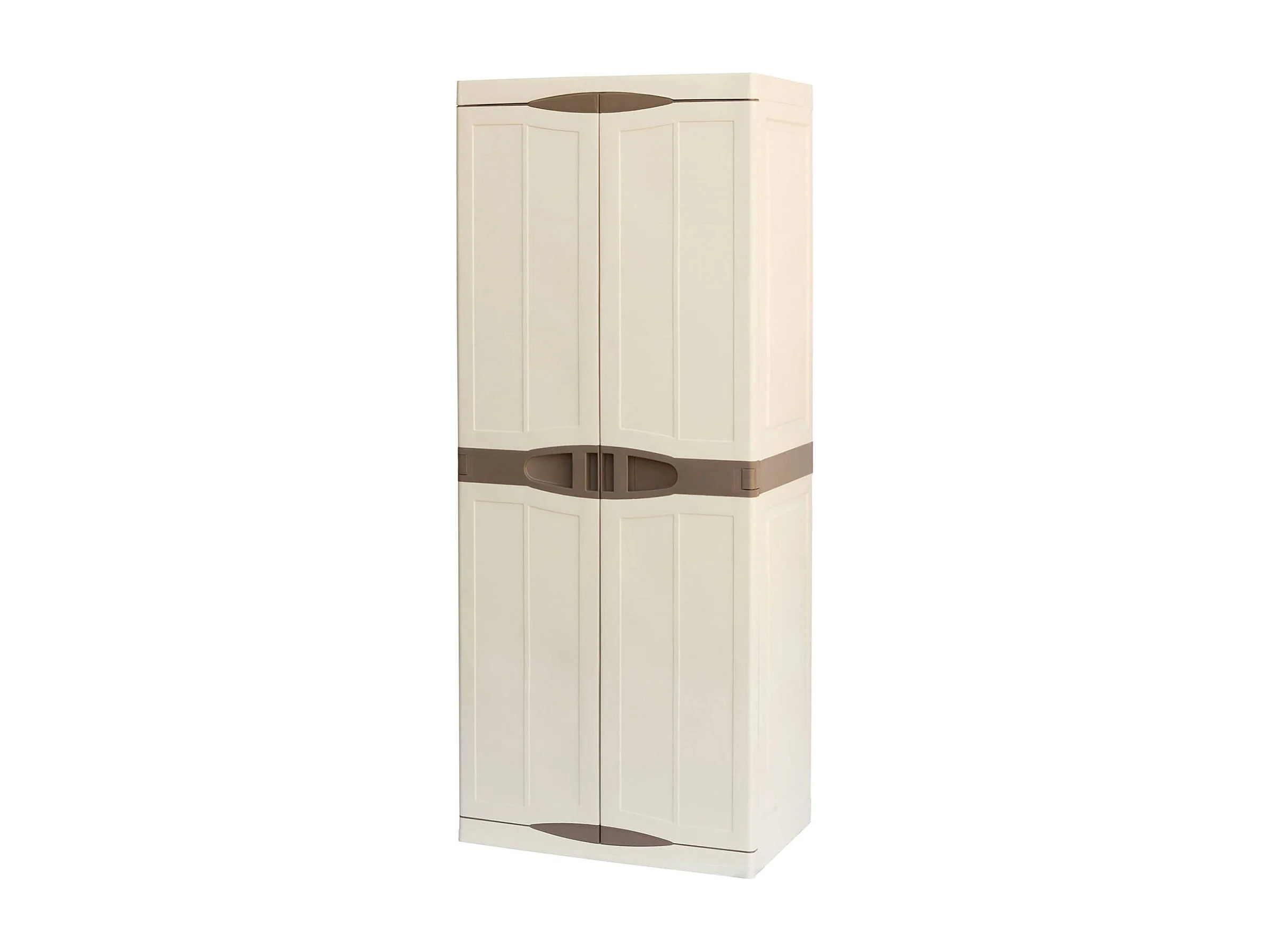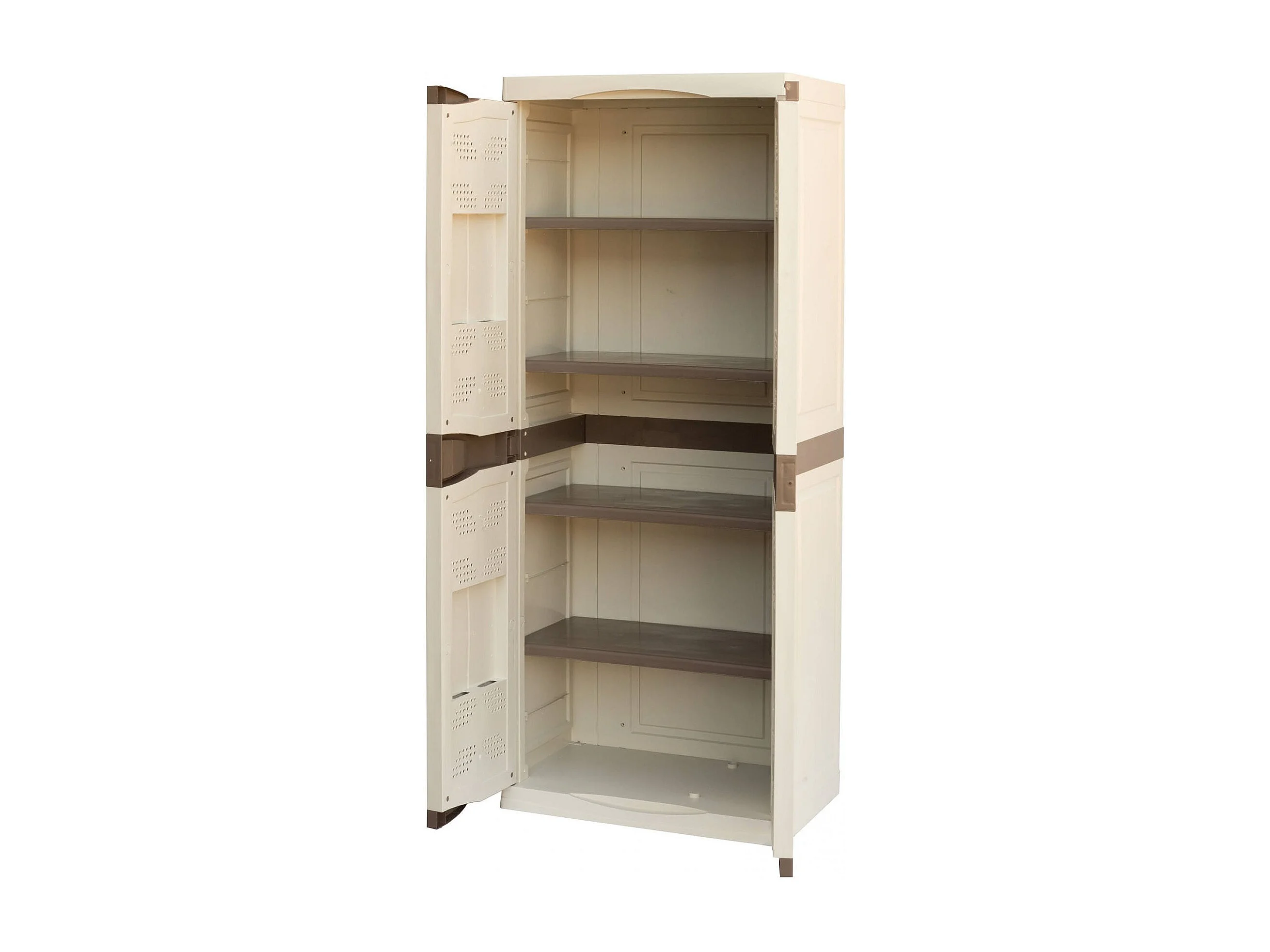 Armoire d'extérieur Marchin, Armoire de balcon polyvalente, Armoire d'extérieur 2 portes, 100% Made in Italy, Beige et Marron, Finition élégante, 70x47h179 cm