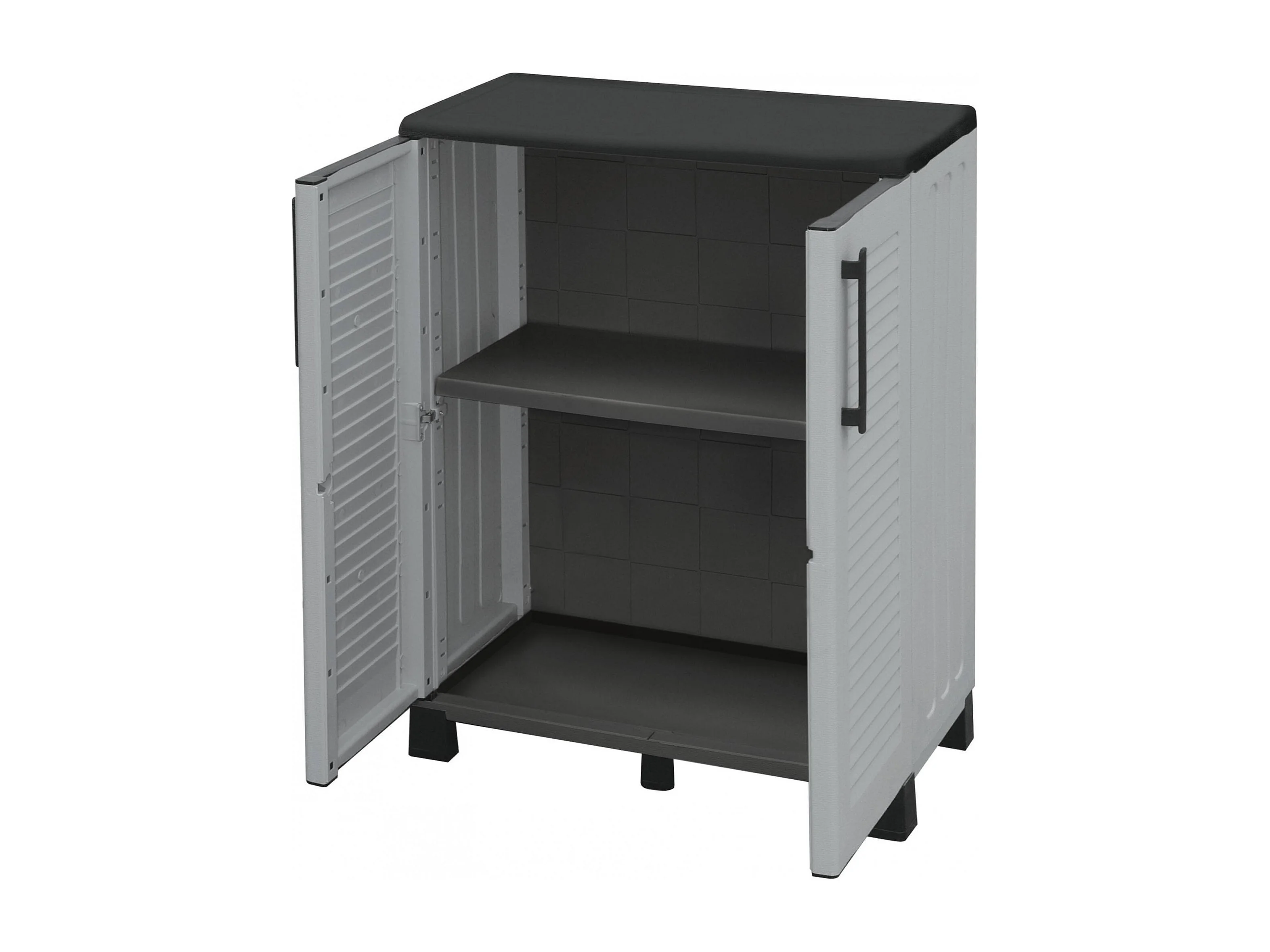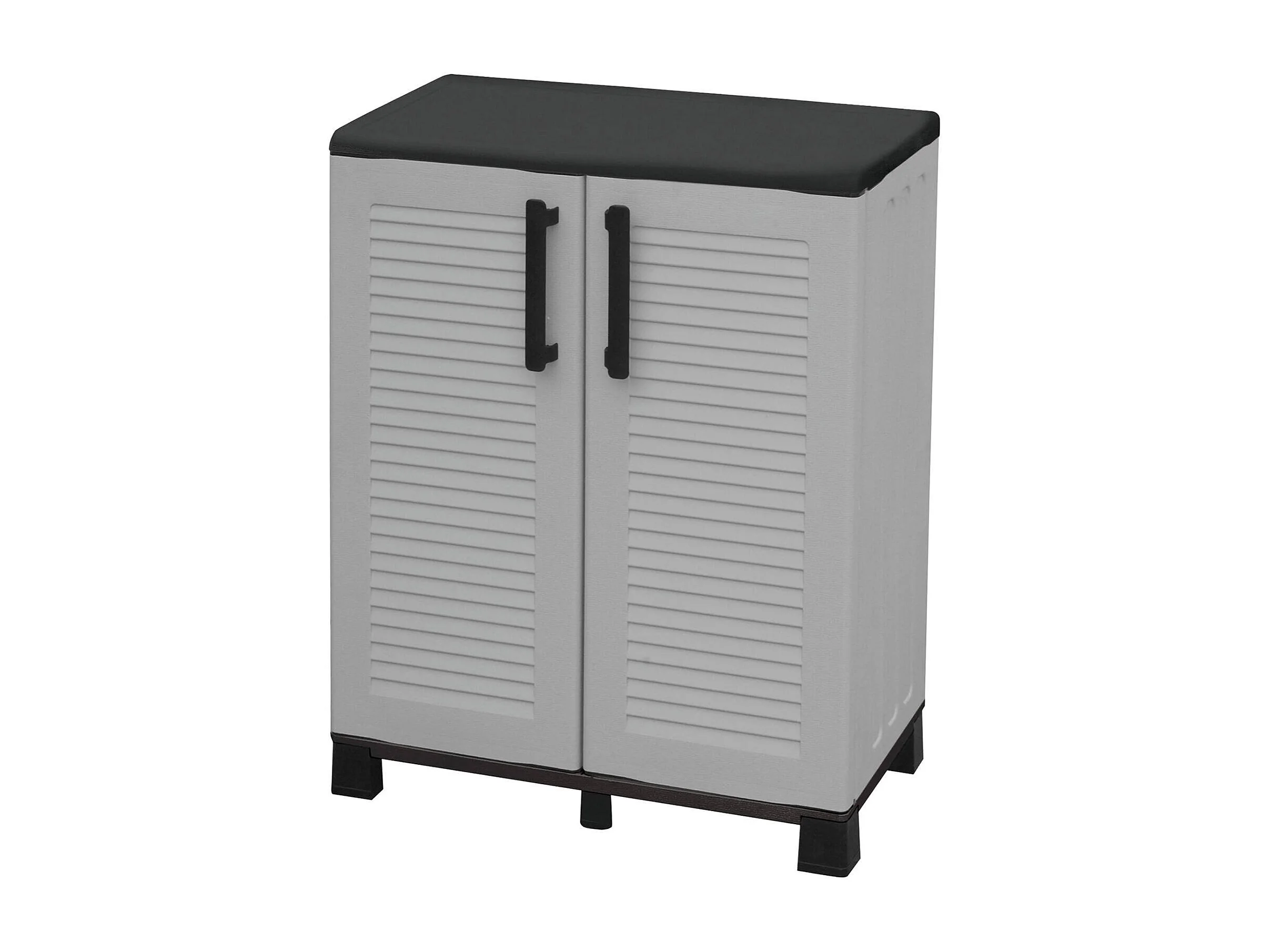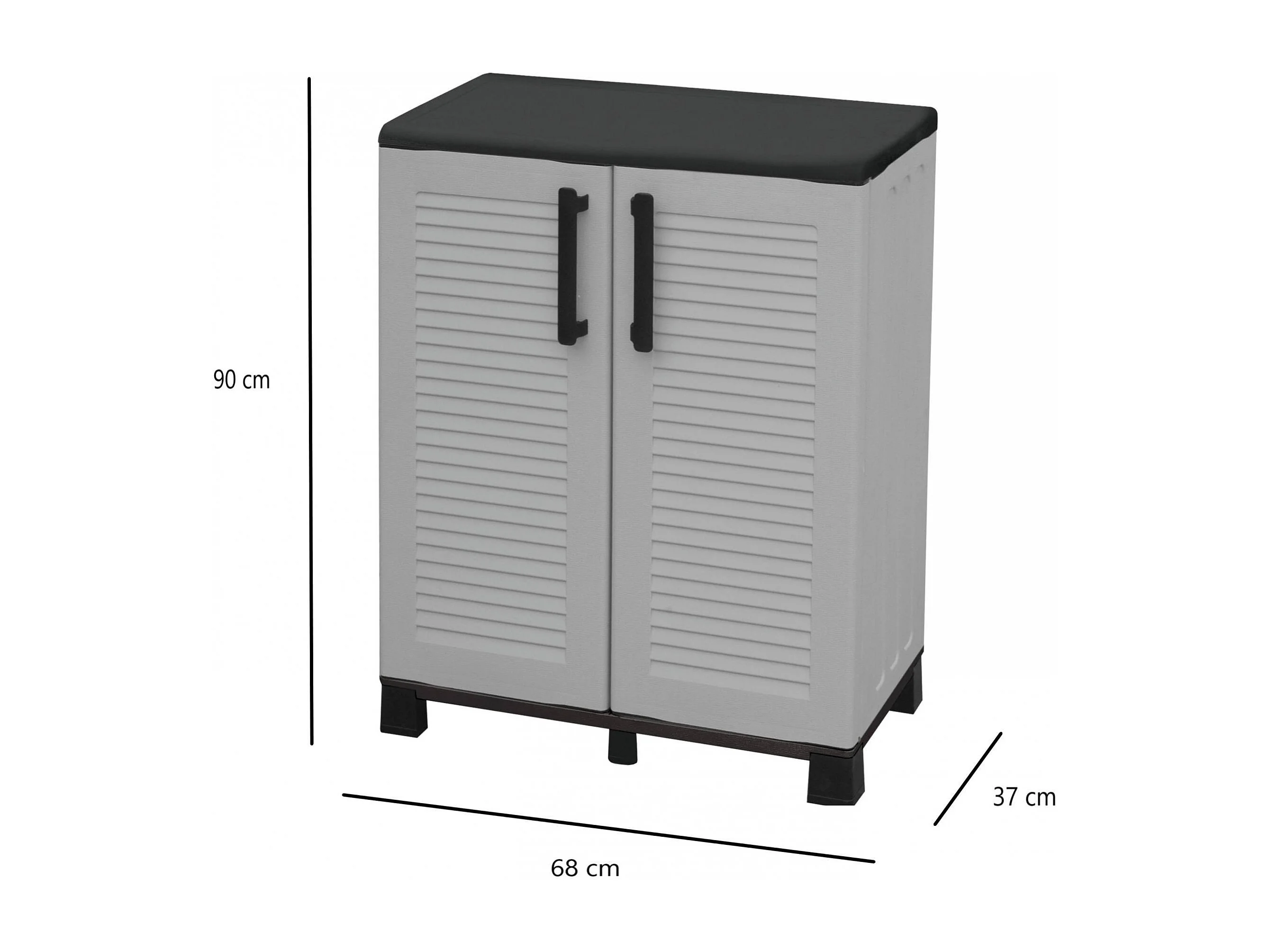 Armoire d'extérieur Wavre, Armoire de balcon polyvalente, Armoire d'extérieur 2 portes, 100% Made in Italy, 68x37h90 cm, Gris clair et noir, Finition rayée