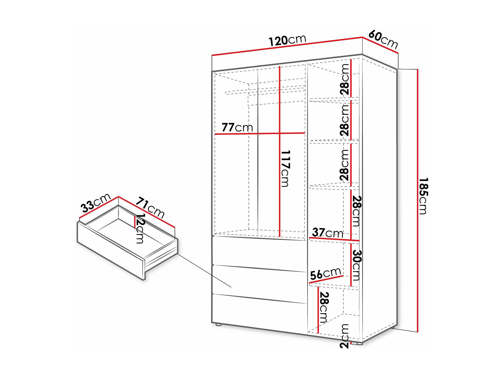 Armoire Domcali 100, Chêne|Coral|Beige, 185x120x60cm